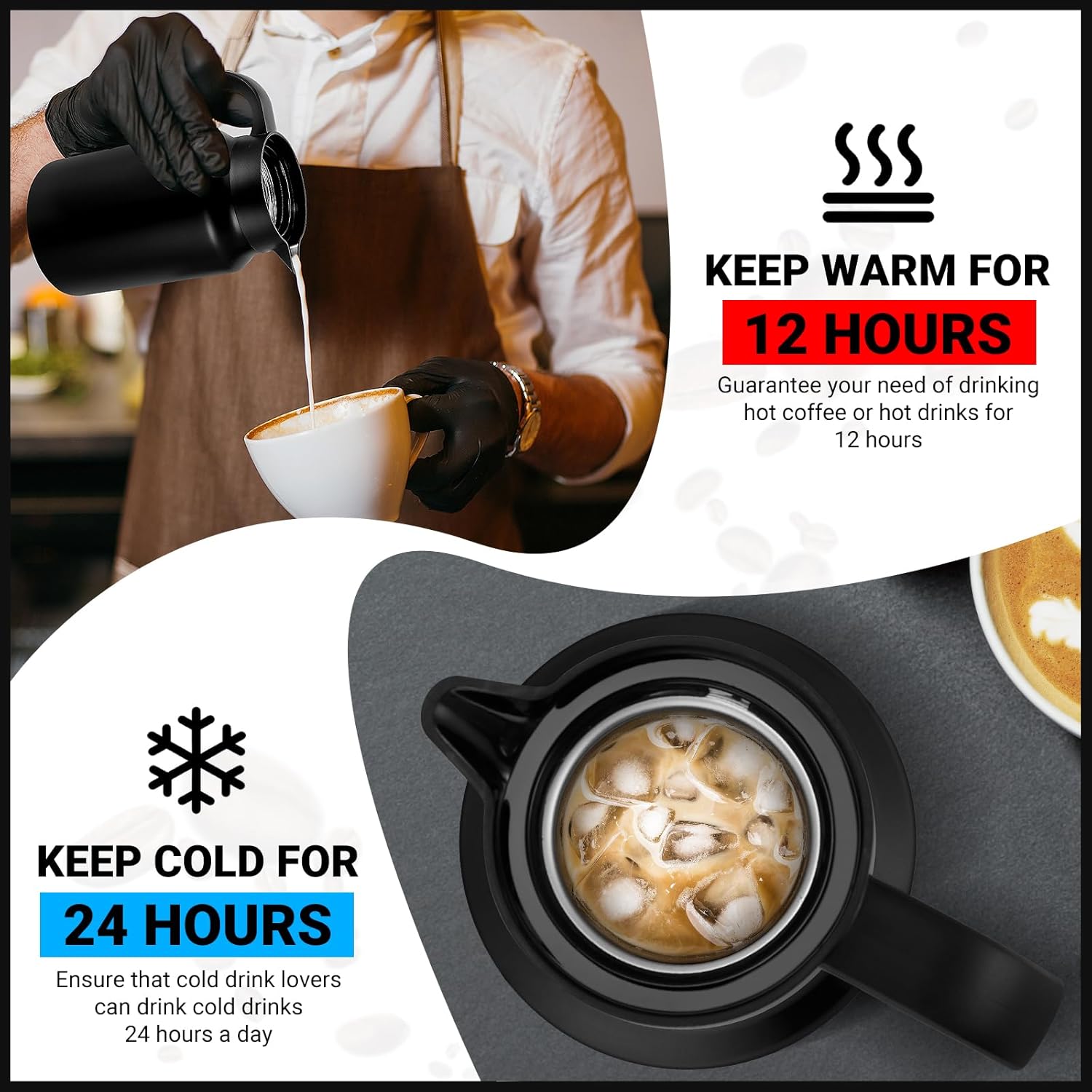 - Double-wall Vacuum Insulation: Perfect for hot water,hot cocoa, milk, or coffee, this double-wall vacuum insulated coffee carafe features advanced insulation to keep your drinks at the ideal temperature for hours.