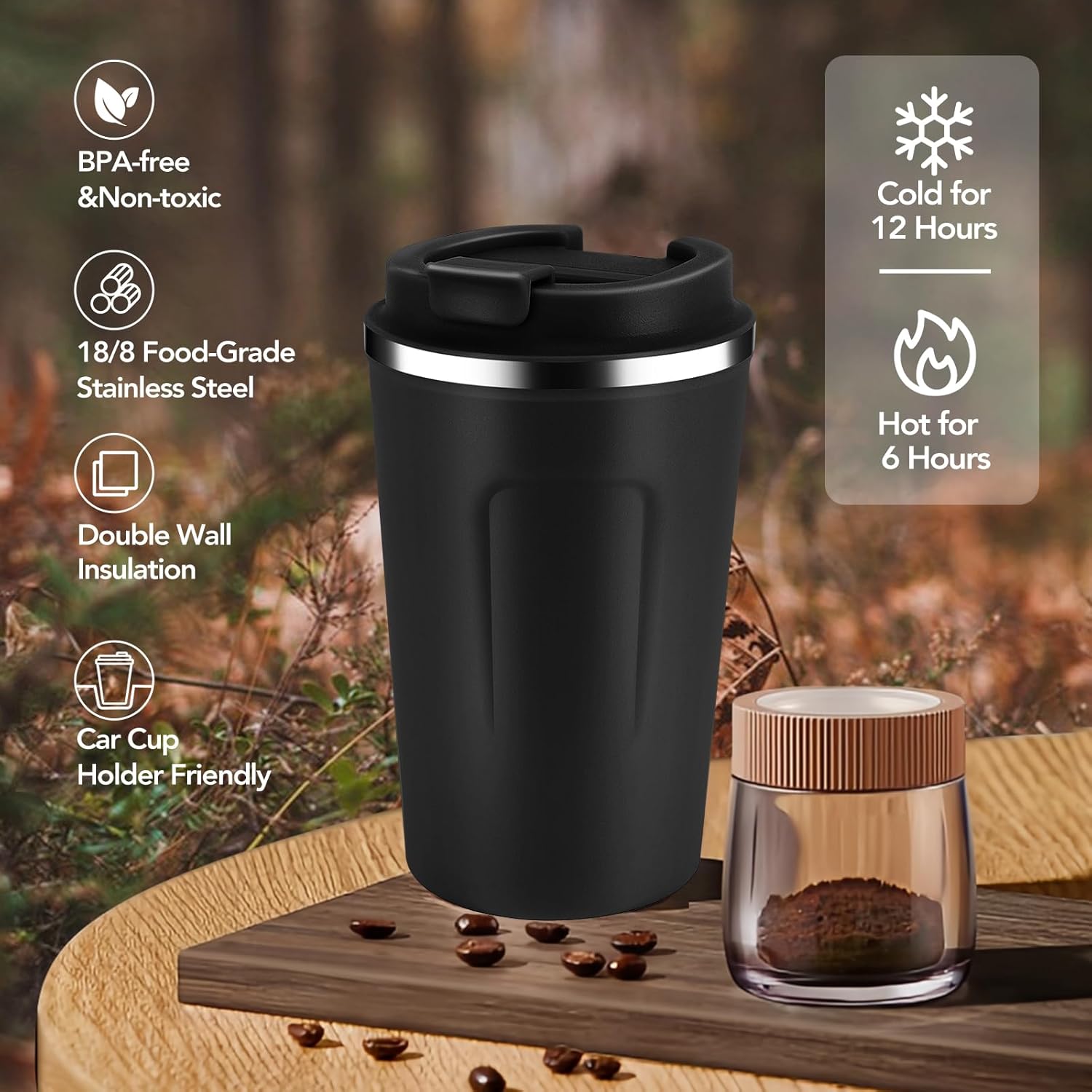 - 【Double Wall Vacuum Insulation】Our cups use double wall vacuum insulation technology to keep your favorite drinks at their ideal temperature for longer,keeping hot drinks warm for 6 hours and cold drinks cold for 12 hours.Allowing you to enjoy the best tasting coffee at any time of the day