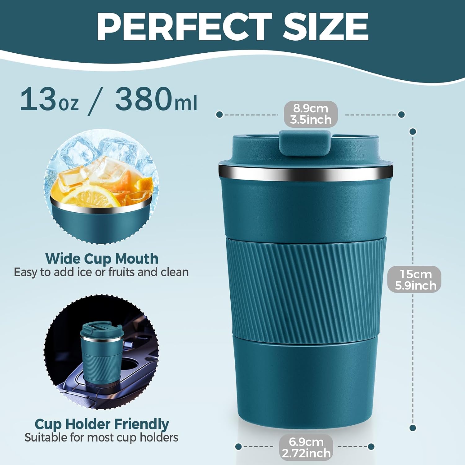 - 【Designed for Coffee Lover】Volhoply 13 oz insulated coffee cup with perfect capacity,designed specifically for coffee enthusiasts.The cup body is equipped with anti slip silicone rings,and the bottom is equipped with anti slip pads,suitable for most car cup holders,which can meet your coffee carrying needs when going out,making your coffee time more comfortable.Enjoy leisurely coffee anytime,anywhere at home,in the office,or on the go!