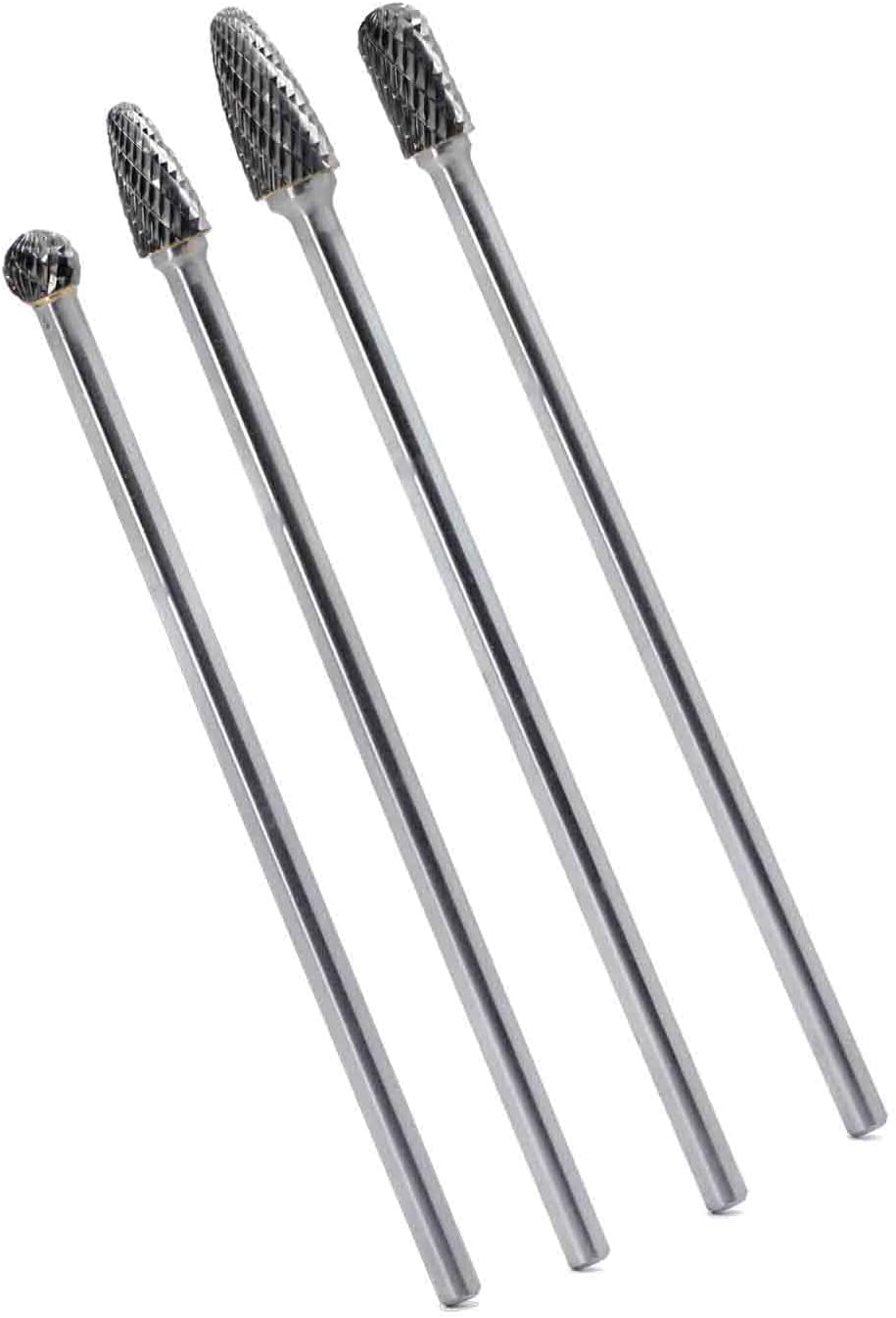 4pcs 6mm Shank Die Grinder Burr Set Rotary File Set Fits Rotary Tool 6-Inch Long Shank Tungsten Carbide Burr Set for Woodworking Drilling Carving Engraving