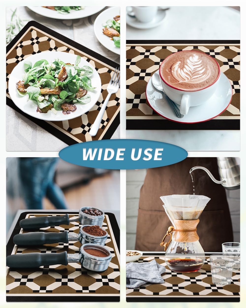 - NO WATER MARKS: special PU surface hide coffee stains, milk stains and any other dark messy stains well. Say goodbye to traditional coffee mat full of stains