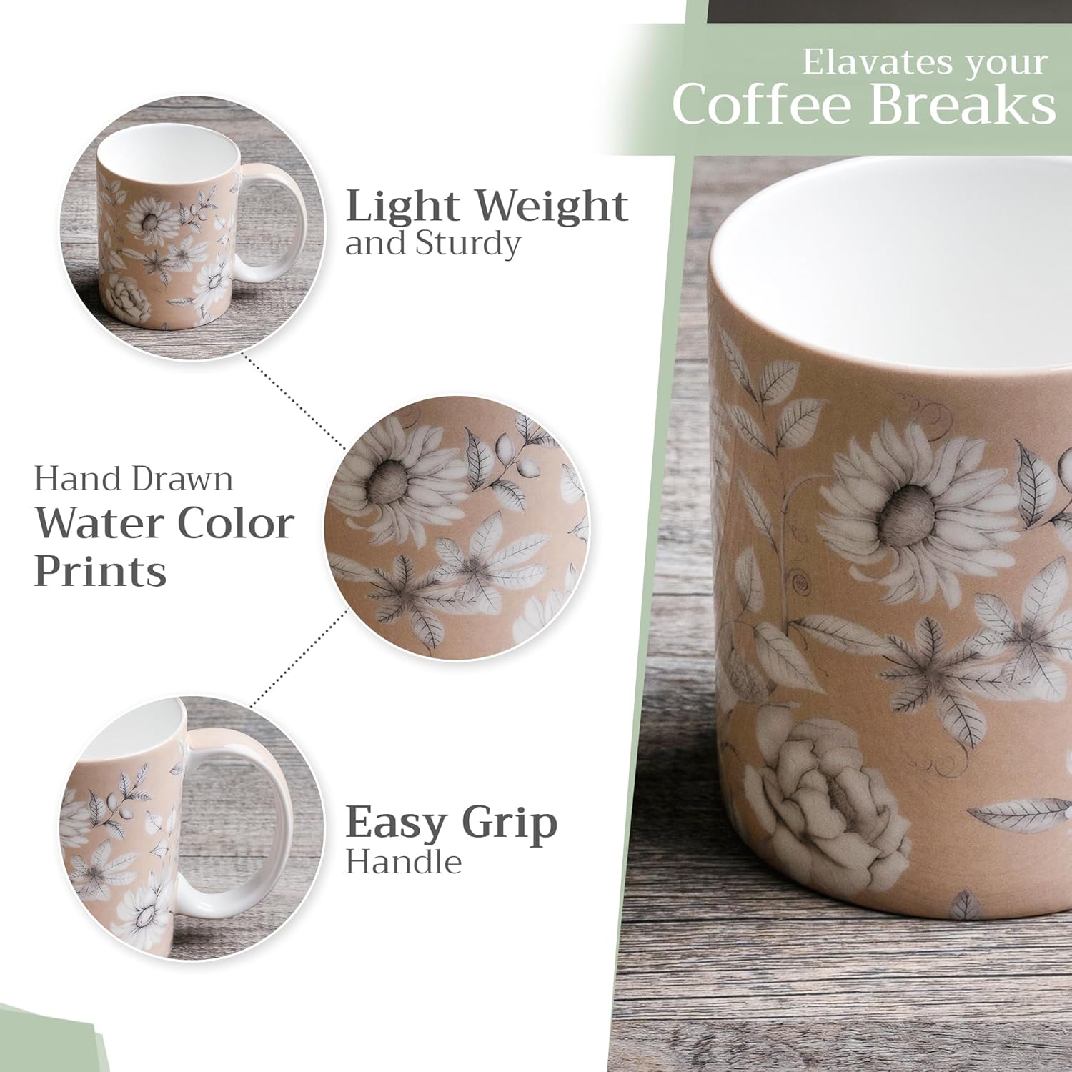 - Convenient Use: Each mug features a smooth, easy-grip handle for maximum comfort. Lightweight and well-balanced, these mugs feel great in your hand and offer the same refined experience you’d expect in a quality café