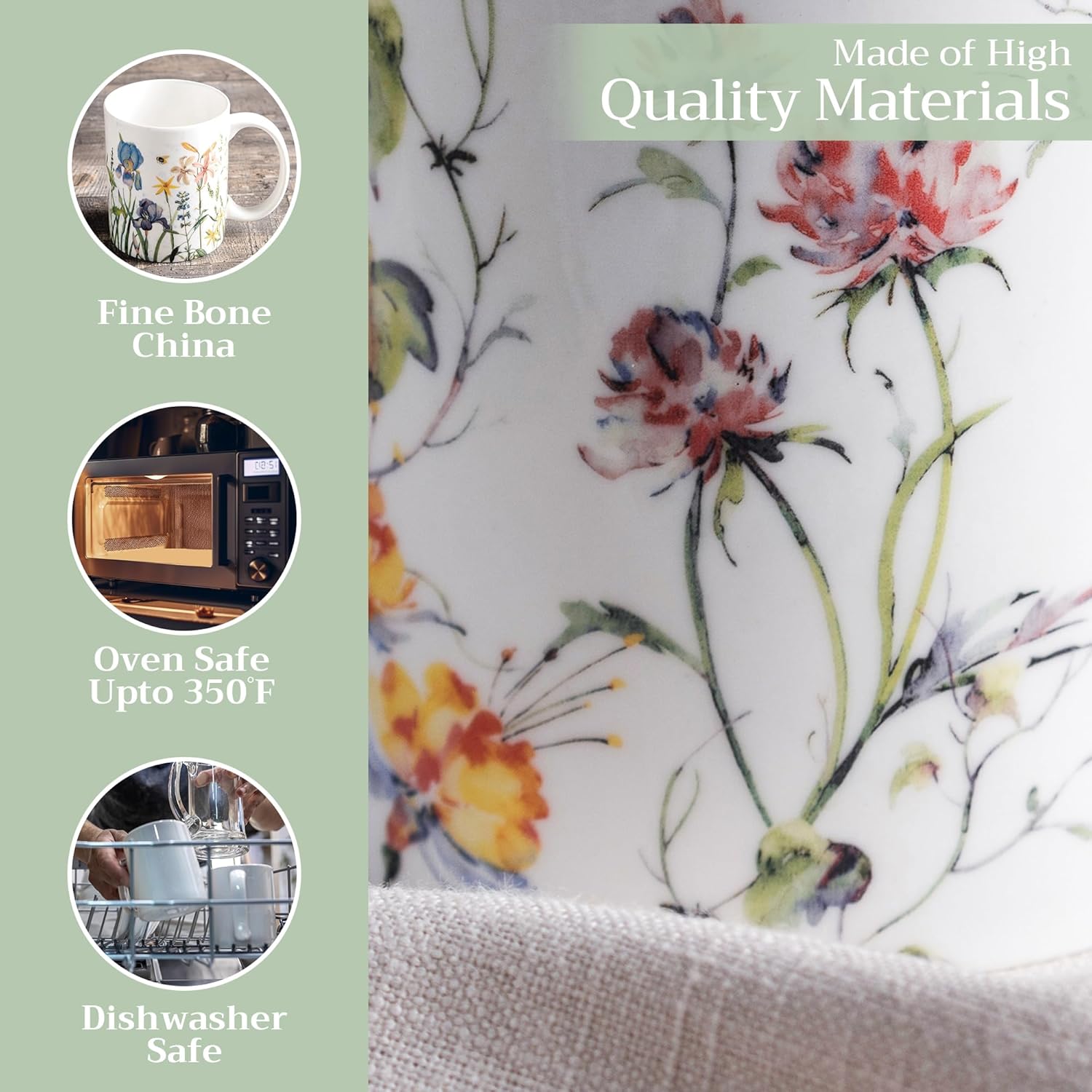 - Easy Care & Maintenance: Microwave, dishwasher, and oven safe up to 350°F. These bone china mugs are built for convenience and durability, making cleanup and reheating simple without compromising on quality
