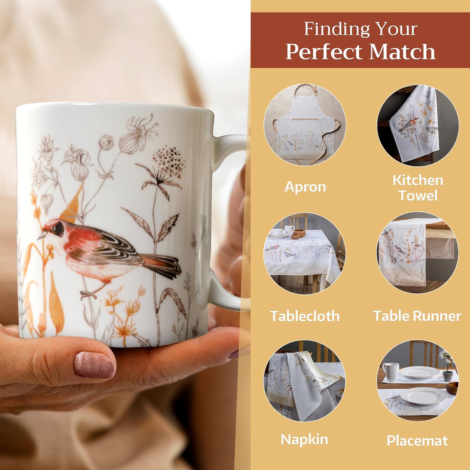 Maison d' Hermine Coffee Mug with Handles Fine Bone China Mugs Pack of One Tea Cups for Hot Beverages Cappuccino Latte Home Office Perfect for Gift (Meadow Florals - Beige Meadow Mornings, 12 Ounce)