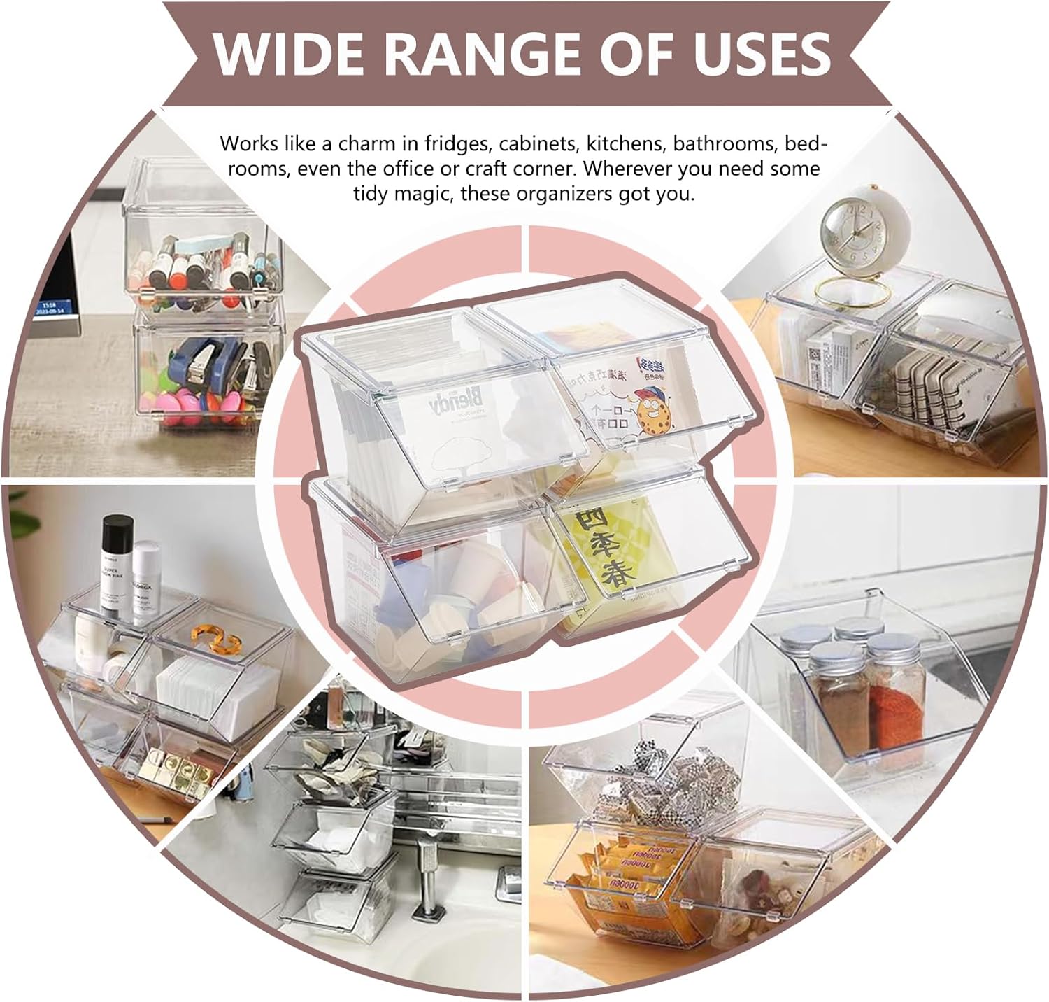 - Versatile Usage: Ideal for various spaces such as kitchens, refrigerators, cabinets, offices, bedrooms, and garages. These boxes adapt to different rooms for functional and organized storage.