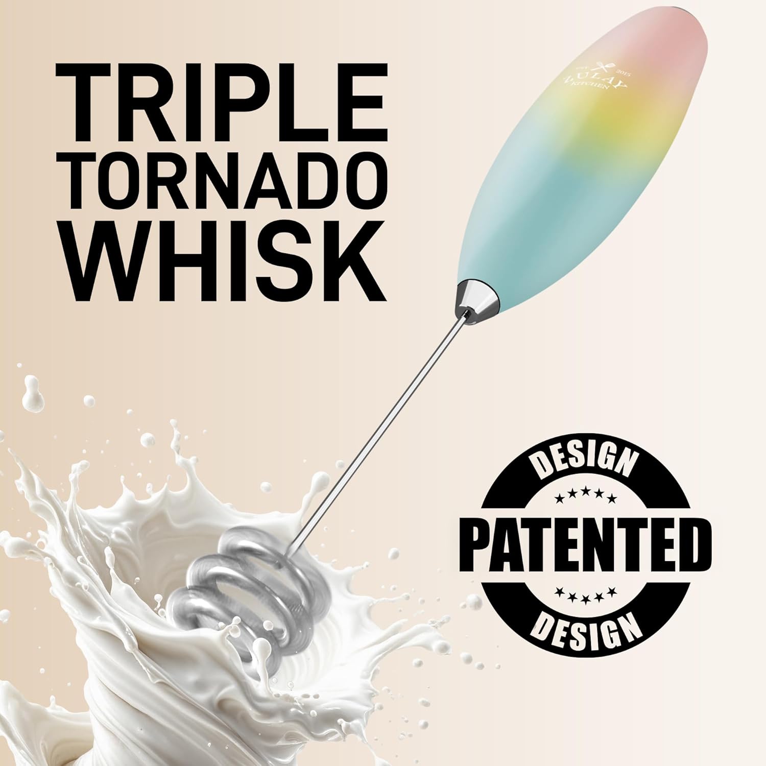 Zulay Kitchen Patented Tornado Triple Whisk Milk Frother with 4 Duracell Batteries – Handheld Foam Maker for Coffee, Lattes, Matcha & Hot Chocolate – Rich, Creamy Froth in Seconds