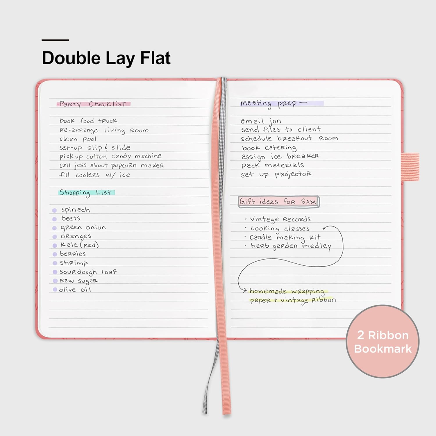 - 180° LAY-FLAT DESIGN: The lay-flat design allows for easy writing and ensures that you can utilize every page efficiently. Journaling, note-taking and planning has never been easier. 2 Bookmarks help you find important content faster.