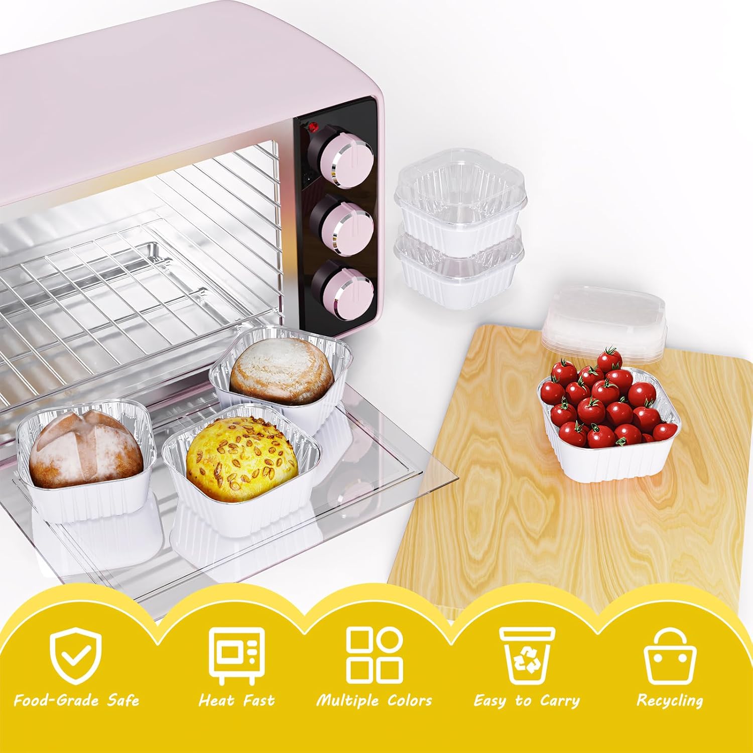 - Easy to Use:These mini baking trays are made of thick food-grade aluminium foil, this aluminium baking cups conduct heat well and can shorten baking time.The jumbo muffin tin can be grilled on the fire, ideal for making caramel pudding, charcoal-grilled cheese, etc. Please kindly note that the clear lids are not heat resistant. and please allow cups to cool prior to applying lids