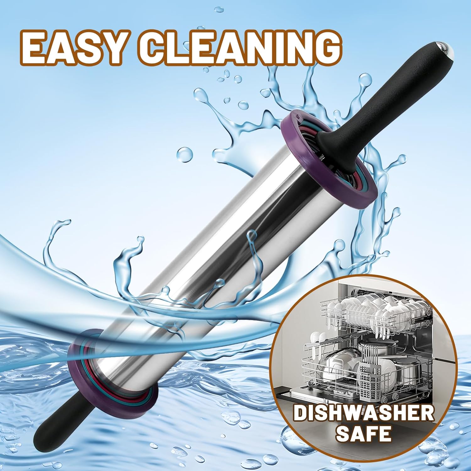 - High Quality: Rolling pin is made of 100 percent of food-grade 304 stainless steel. Elegant and stylish, high-grade satin brushed stainless steel finish for long life, very easy to clean. The stainless steel dough roller is so smooth to surprise you
