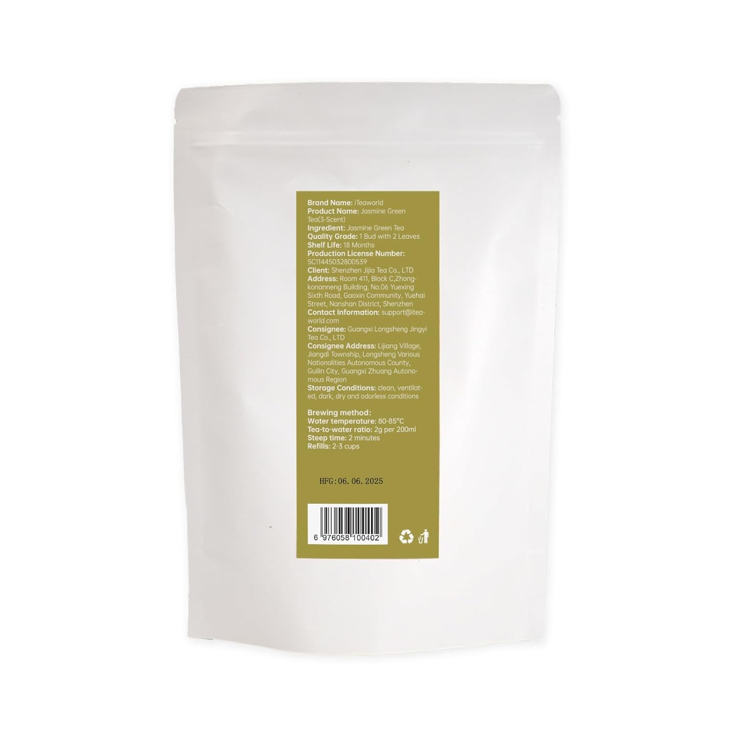 iTeaworld Authentic Triple-Scented Jasmine Green Tea, Subtle Floral Aroma, 2025 New Chinese Loose Leaf Tea, Low Caffeine, Sweet After Taste, Entry-level Jasmine Tea- 1 Pack (3.5oz)