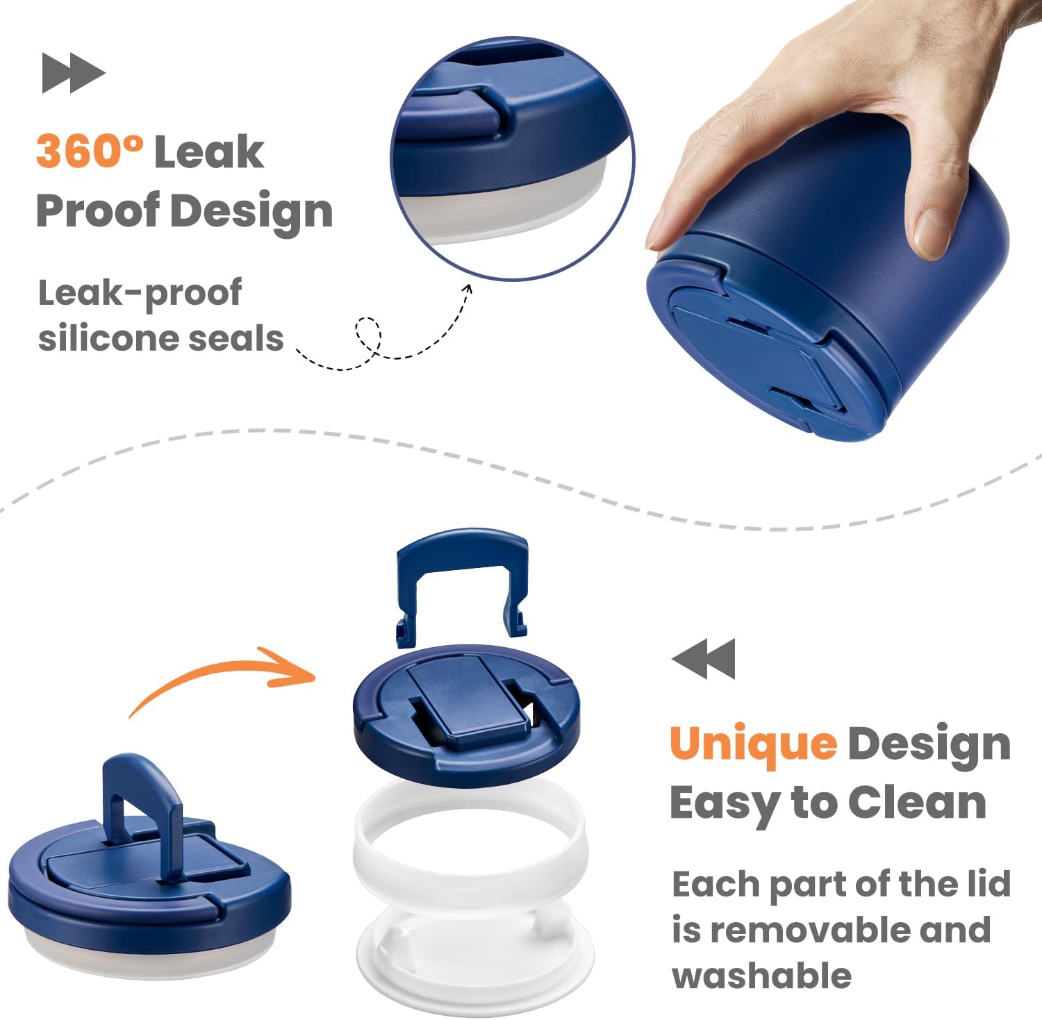 - Use Tips and Notes: In order to keep your food hot or cold for a longer period of time, we recommend preheating/pre-cooling your food or soup in hot/ice water for 5~10 minutes before placing it in the food jar. Note, when you remove the lid for cleaning and then re-installing, q please follow the installation steps in the picture, when installing the buckle please squeeze the top and bottom part of the lid with your hand to utilize the installation.