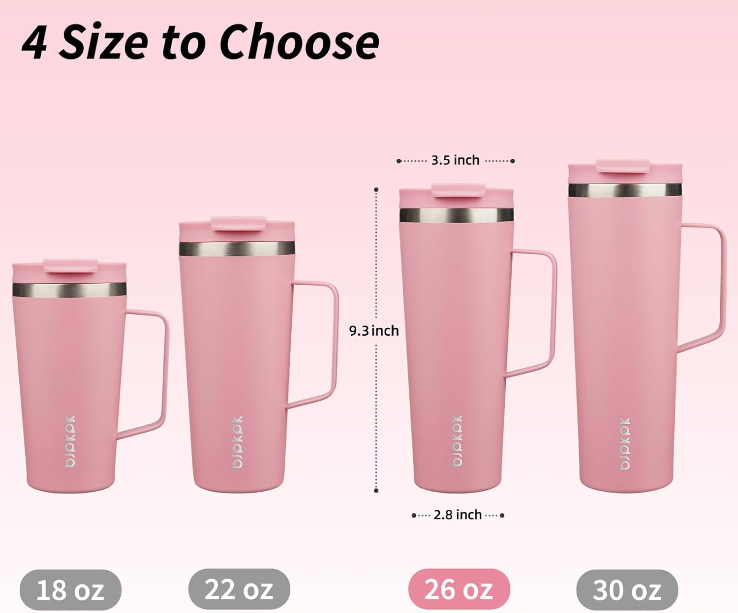 BJPKPK Insulated Tumbler with Handle, 26oz Insulated Tumblers with Lid and Straw, Stainless Steel Metal Water Bottles, Coffee Travel Mugs, Cups, Light Pink