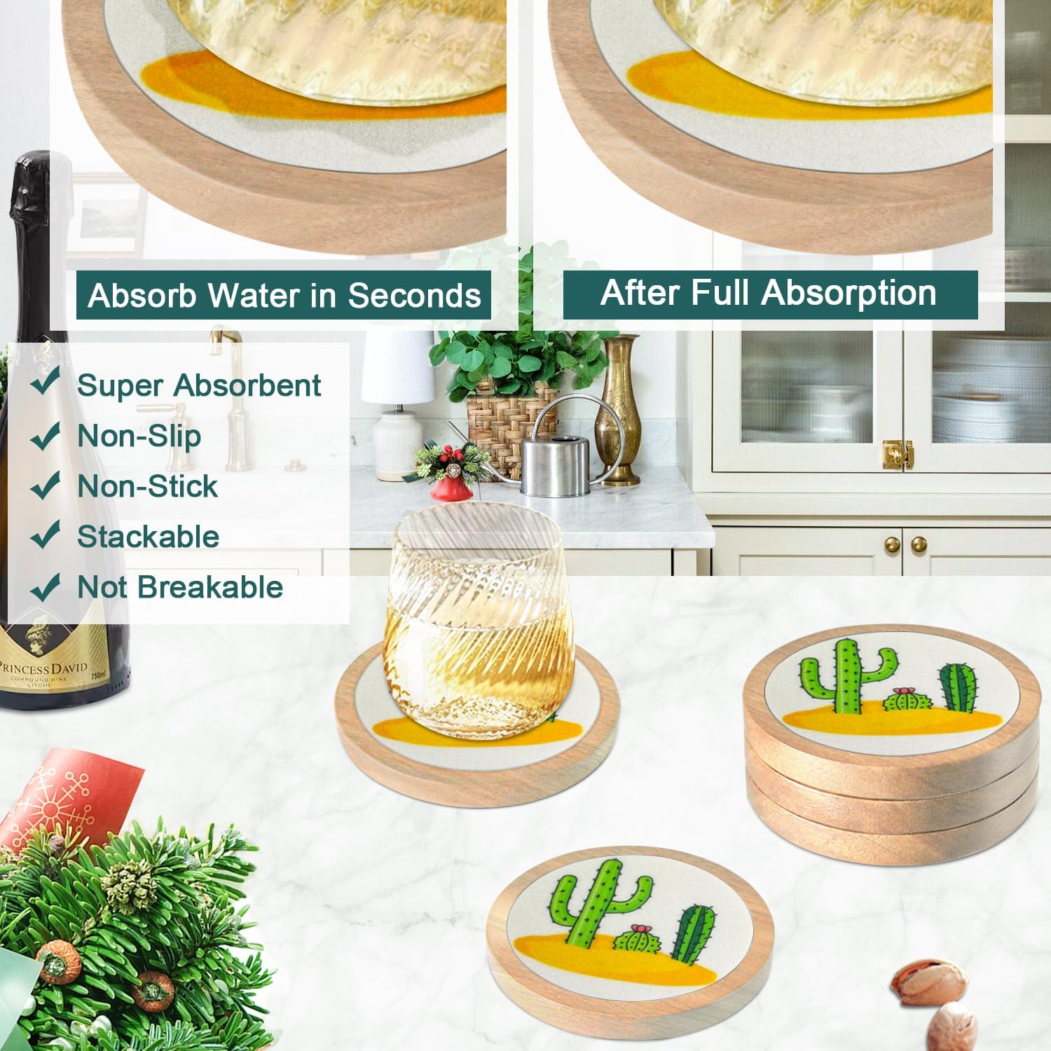 Cactus Coasters for Drinks, Minacun Absorbent Coaster Set of 5, Funny Coasters for Coffee Tabletop Protection, Unique Gift for Home, Office, Bar Decor, 4.3 Inches