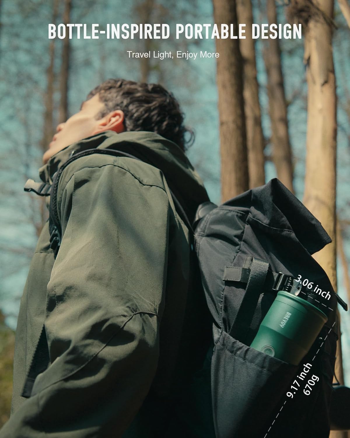 - Portable, Bottle-Inspired Design: Weighs just 1.48 lbs with automatic one-button extraction. The lid doubles as a coffee cup, freeing your hands for an easier brew on the go.