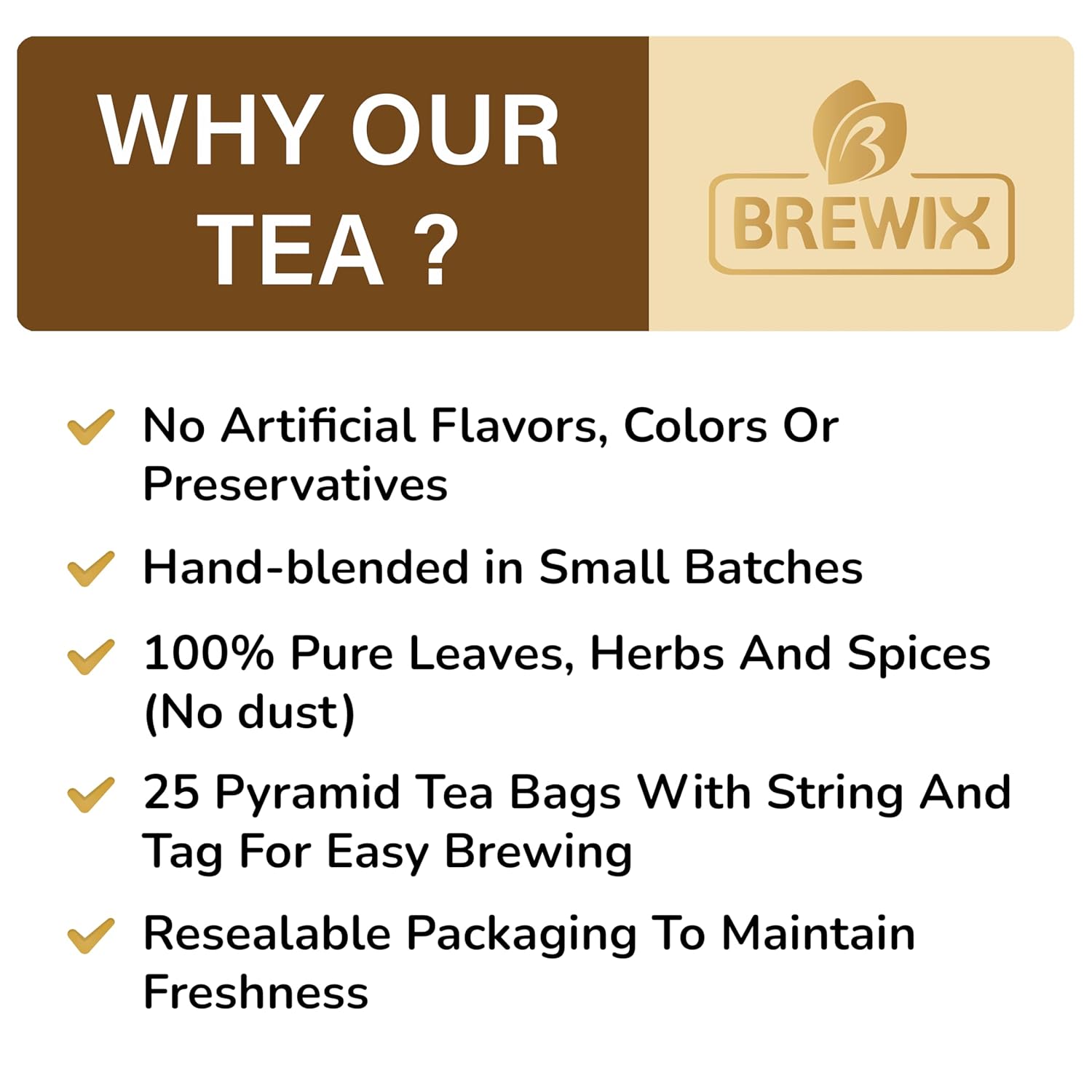 BREWIX, Vanilla Caramel Dessert Tea (25 Pyramid Black Tea Bags) | Naturally Flavored, Caffeinated & Sugar-Free | A Cozy & Indulgent Brew for Anytime Cravings