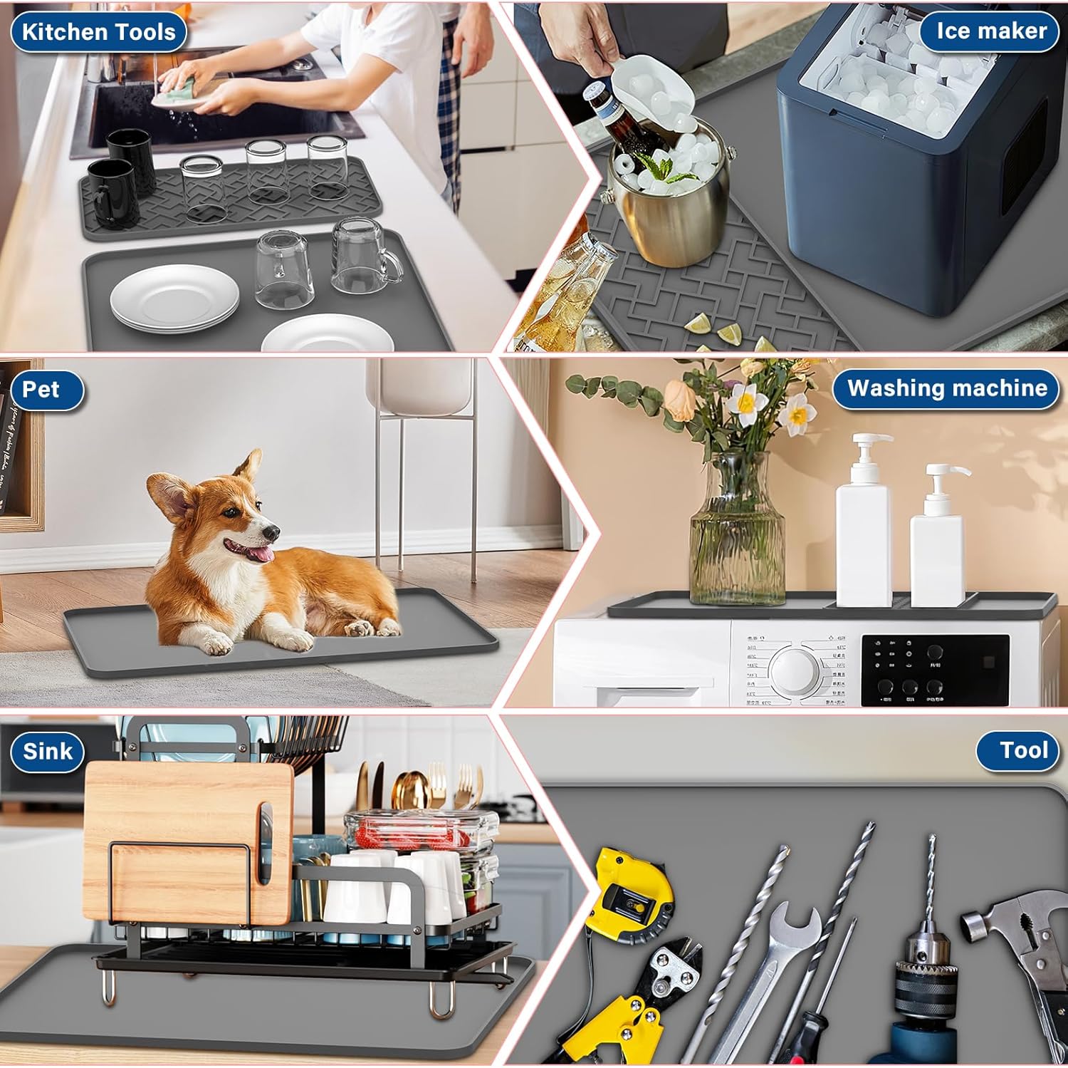 - 5.MULTI-PURPOSE PRACTICAL: This silicone coffee mat is not only perfect for brewing coffee, but kitchen countertop, cups, water dispensers, mixers, ice cream machines, dish washing racks, dinner plates, tableware, etc., or as a food pad for pets.