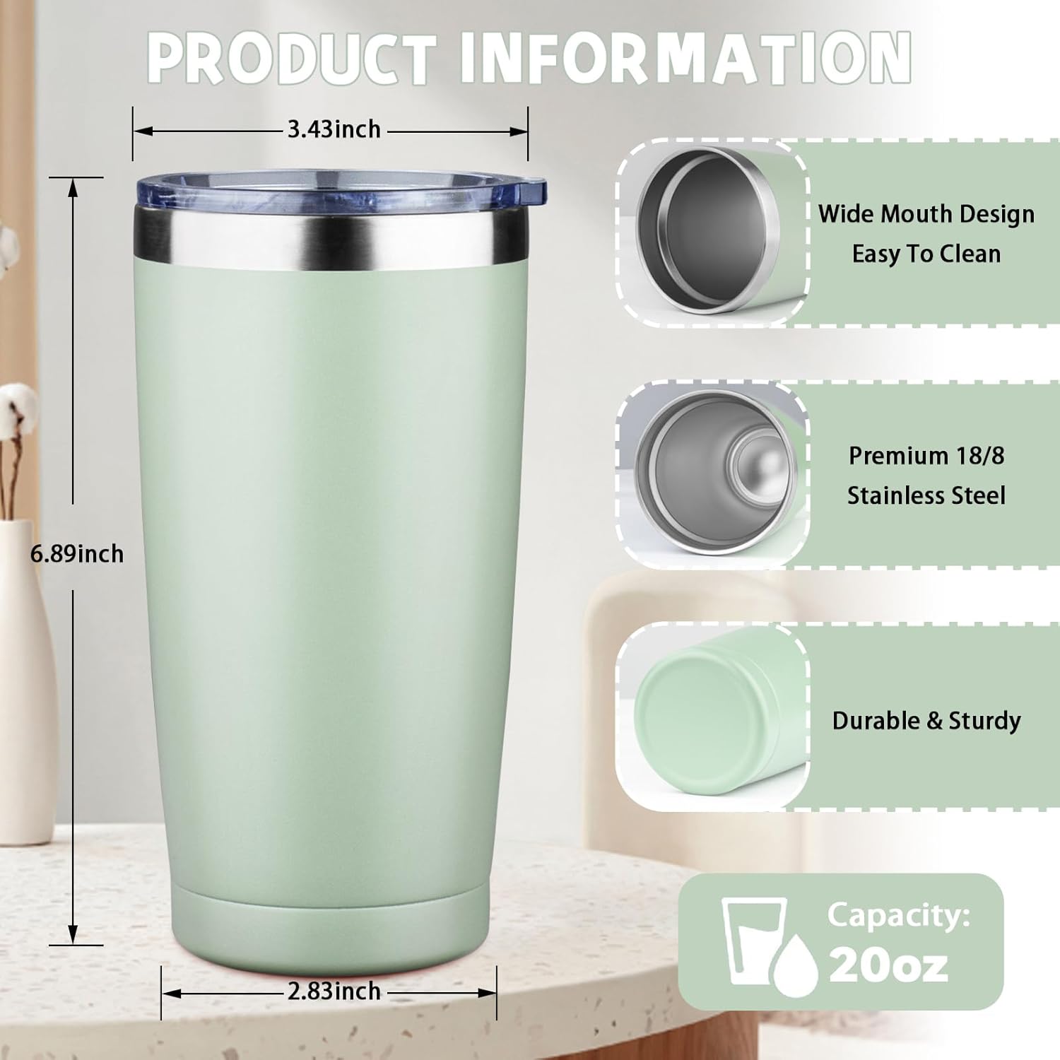 - โ ใ๐๐ผ๐๐ฏ๐น๐ฒ ๐ช๐ฎ๐น๐น ๐ฉ๐ฎ๐ฐ๐๐๐บ ๐๐ป๐๐๐น๐ฎ๐๐ถ๐ผ๐ปใ20 oz tumbler with straw is designed with double wall vacuum insulation that will not produce condensation and will keep your drink cold or hot for a long time. At room temperature, it can keep your drinks cold for up to 12 hours and hot for up to 8 hours.With a large 20 oz capacity, it can meet your daily or travel drinking needs and keep you hydrated at all times.