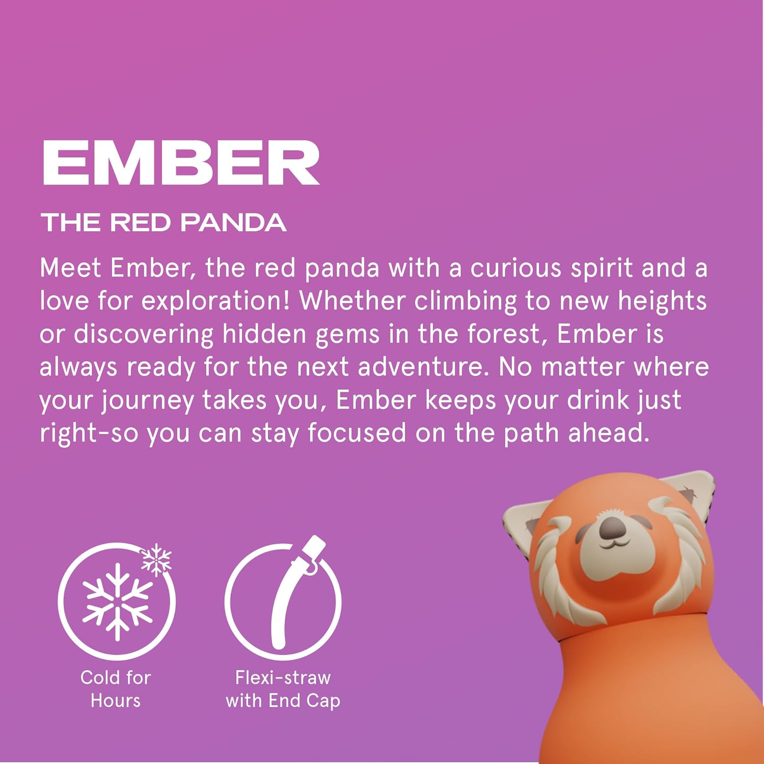 asobu Bestie Bottle Insulated Stainless Steel Water Bottle with Detachable Soft Animal Head Fun Drinking For Kids and Teens with Flexible Reusable Straw 16 Ounce