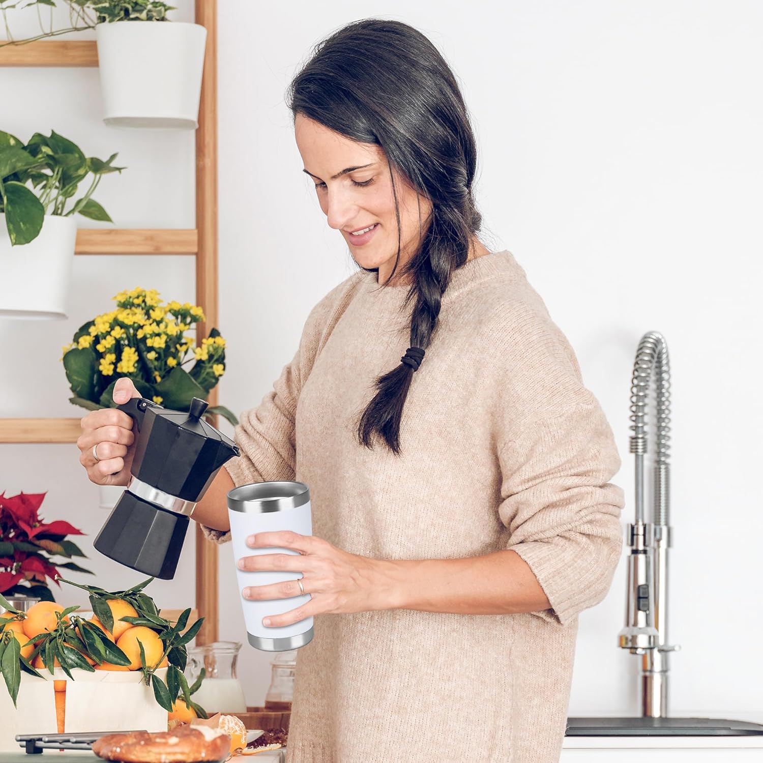 20 oz Tumbler Stainless Steel Tumblers Bulk with Lid Double Wall Insulated Coffee Tumbler Cups for Hot & Cold Drinks Powder Coated Travel Coffee Tumbler Mug Metal (White, 1 pack)