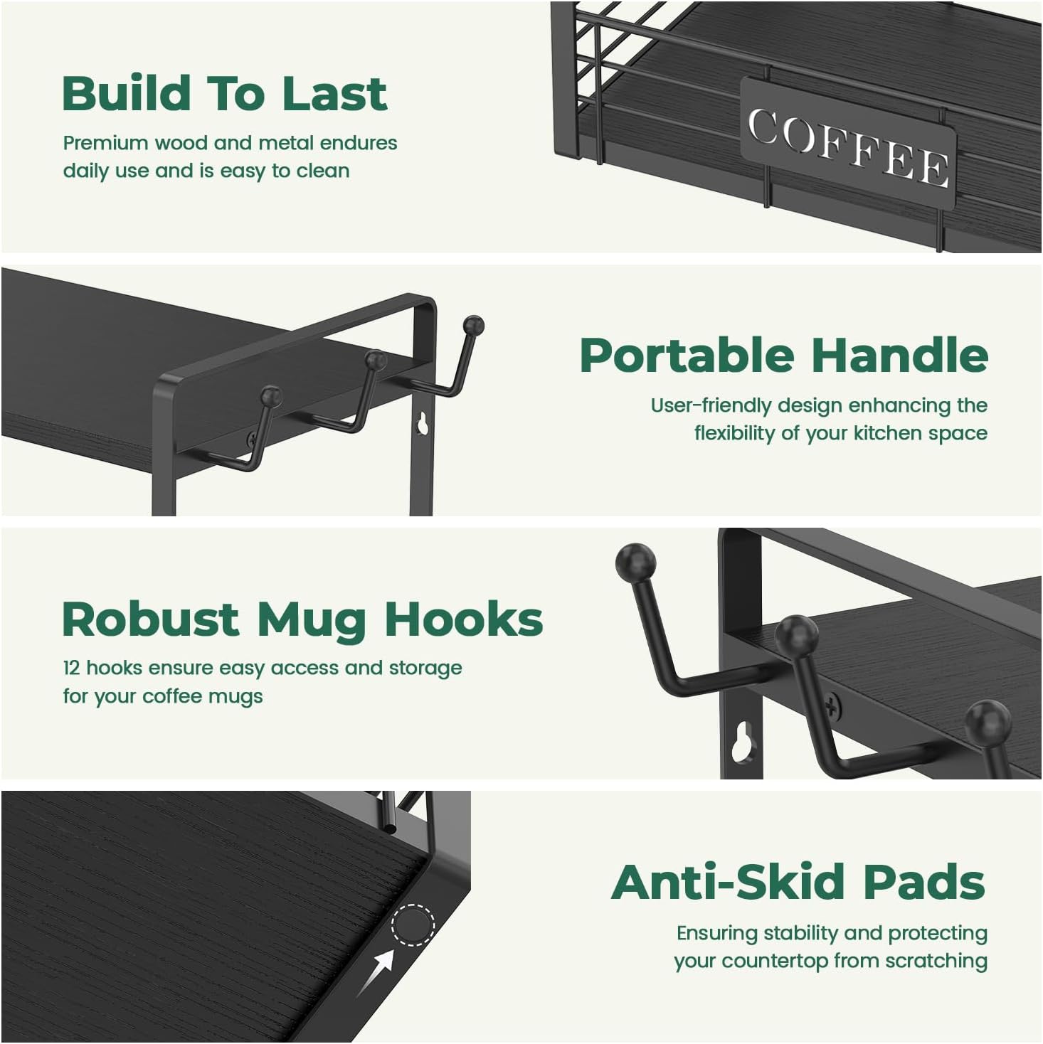 - Built to Last & Stable: Experience unmatched stability and durability with our coffee mug holder, crafted from premium materials. Designed to withstand daily use, it ensures a stable and secure setup in any kitchen, dining area, or office coffee station