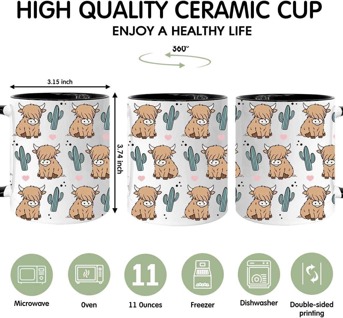 Highland Cow Coffee Mug 11oz, Highland Cow Gifts for Women, Cowgirl Stuff