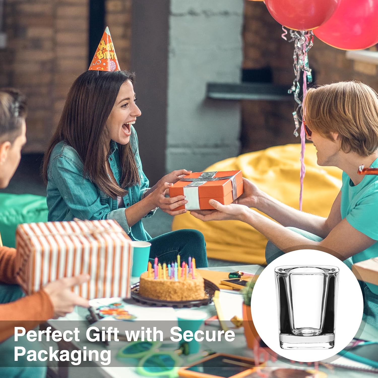 - Sturdy Heavy Base Design for Stability: Each of these 1 oz shot glasses features a solid,heavy base that prevents tipping and spilling,making them ideal for any setting.Whether you're serving vodka shot glasses,tequila shot glasses,or whiskey shot glasses at home, in a bar,or at a party,these bar shot glasses ensure stability with every pour.Enjoy your favorite spirits without the worry of messy accidents.