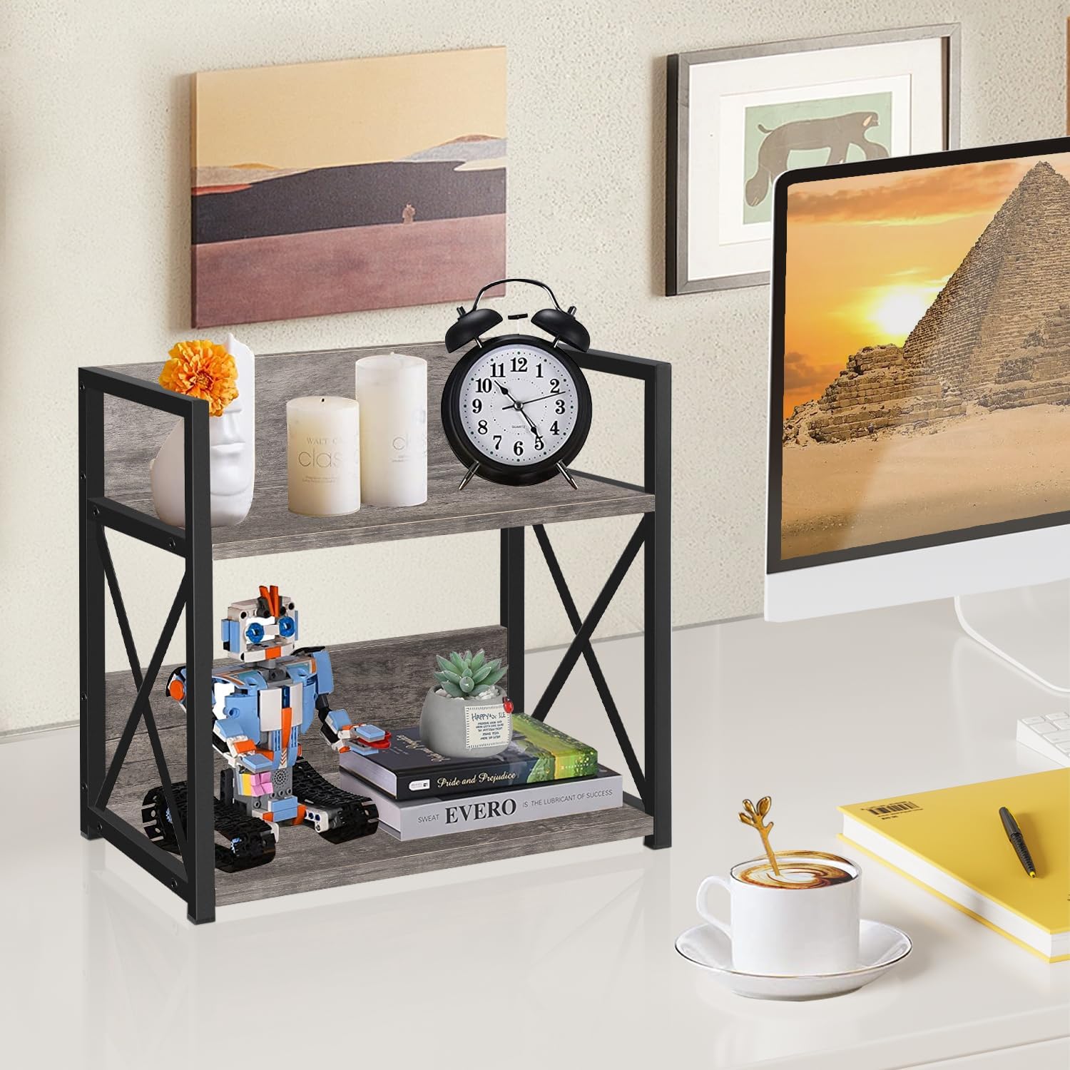 YINMIT Countertop Shelf Organizer,Coffee Bar Accessories,Spice Rack,Coffee Counter Shelf,2 Tier Coffee Organizer Station for Mugs,Cups,Cream,Syrup(Rustic Grey, Medium)