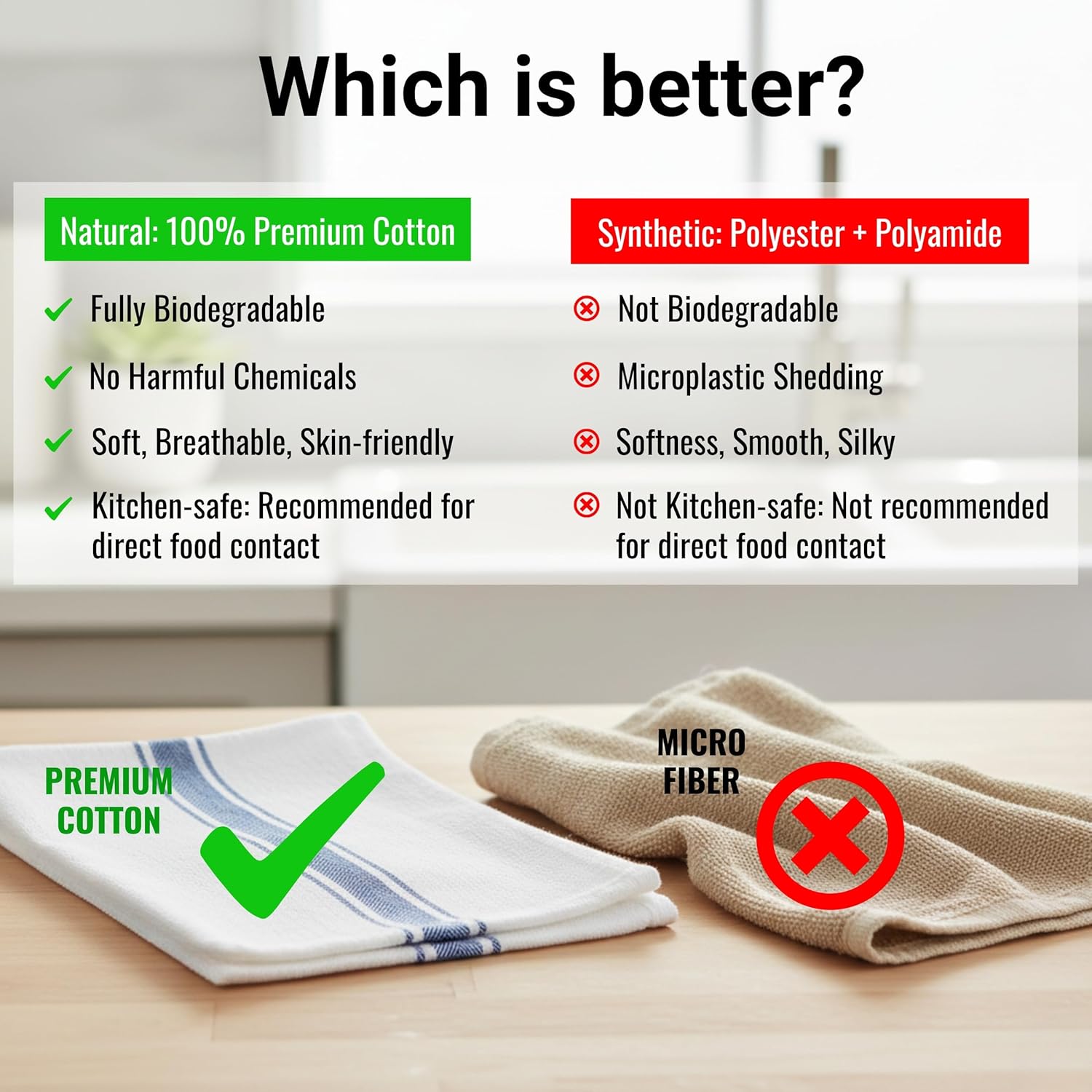 - High Absorbency: These 100% cotton kitchen towels are ultra-absorbent and quick-drying, perfect for drying dishes, wiping up spills, and general cleaning.