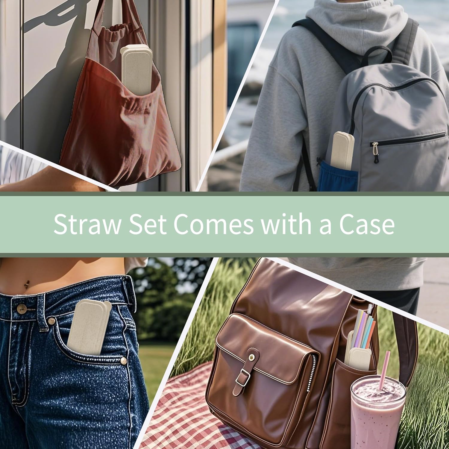 - 【PORTABLE STRAW SYSTEM】 Package includes a sturdy wheat straw case that outlasts flimsy paper boxes competitors use. At 9" collapsible length, these travel straws reusable with case fit in car cup holders, backpack pockets and diaper bags. Bend the straw horizontally for compact storage or cut to custom lengths for tumblers.