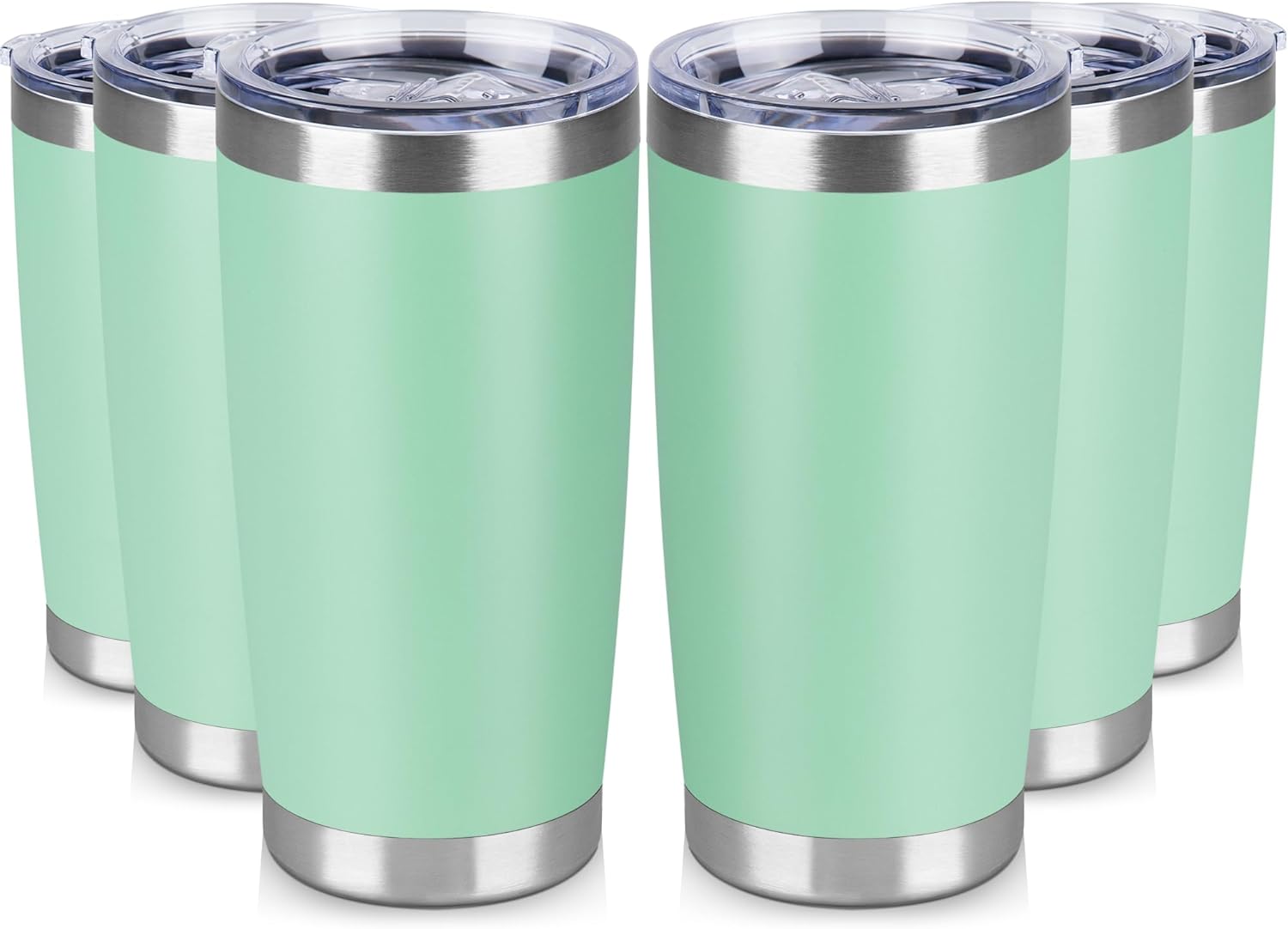 20 oz Tumbler Stainless Steel Tumblers Bulk with Lid Double Wall Insulated Coffee Tumbler Cups for Hot & Cold Drinks Powder Coated Travel Coffee Tumbler Mug Metal (Jade, 6 pack)