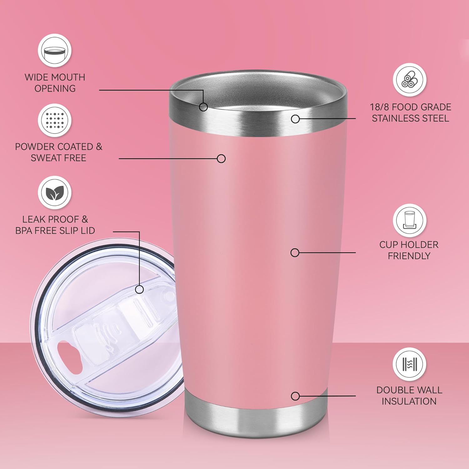 20 oz Tumbler Stainless Steel Tumblers Bulk with Lid Double Wall Insulated Coffee Tumbler Cups for Hot & Cold Drinks Powder Coated Travel Coffee Tumbler Mug Metal (Rose Pink, 12 pack)