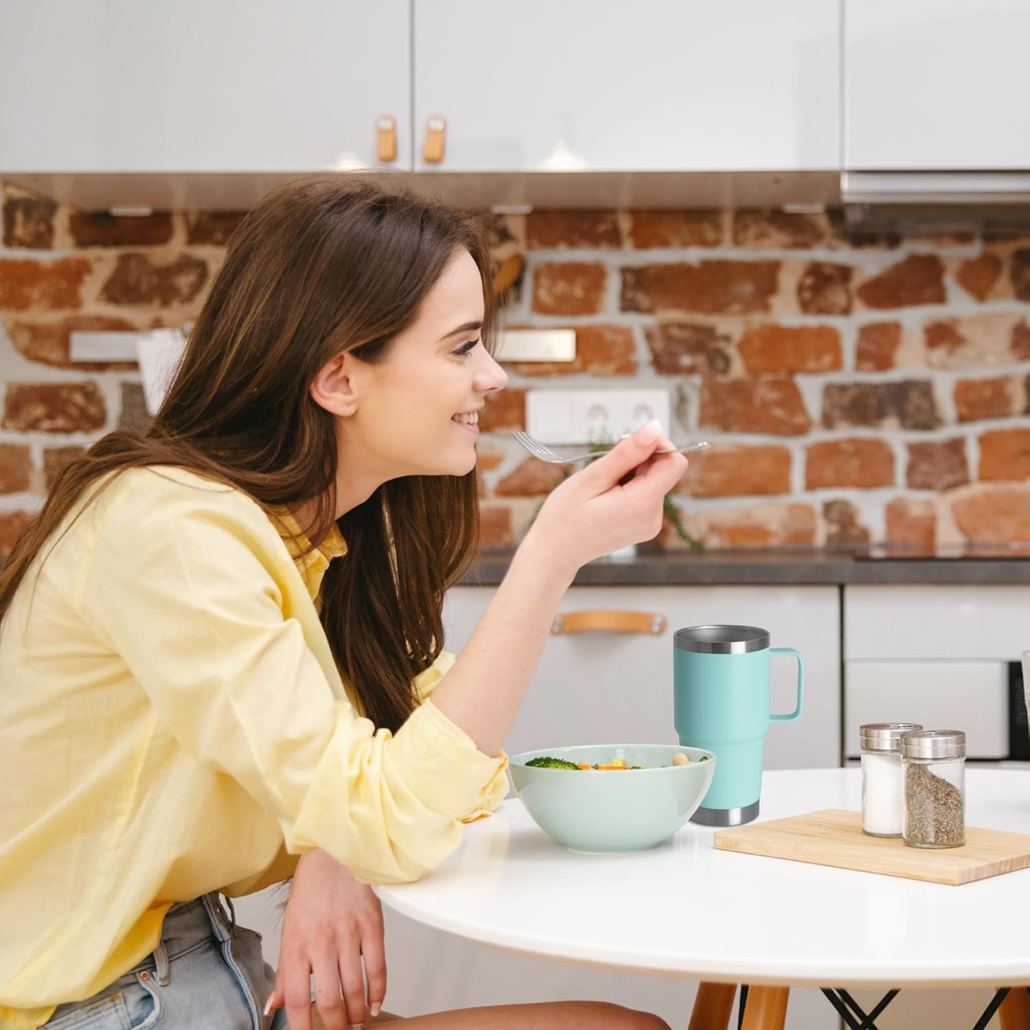 - Stainless Steel Tumblers with Handle:The 20oz coffee mug is made of thickened 304 stainless steel, liner of coffee mug will not produce any taste and will not rust.The cup comes with a sturdy welded handle for easy grip and ease of use