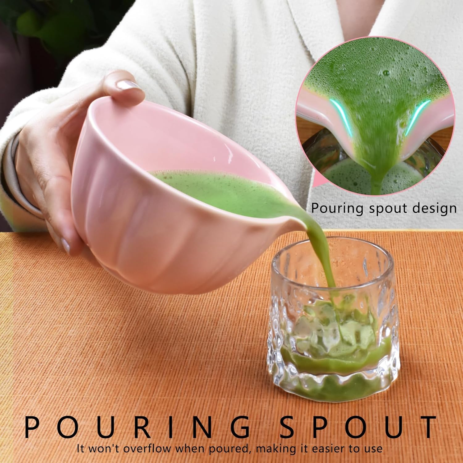Artcome 4 Pcs Japanese Matcha Tea Set - Matcha Bowl with Pouring Spout, Matcha Whisk, Tea Scoop, Whisk Holder, Handmade Matcha Ceremony Kit For Japanese Tea Ceremony, Rose