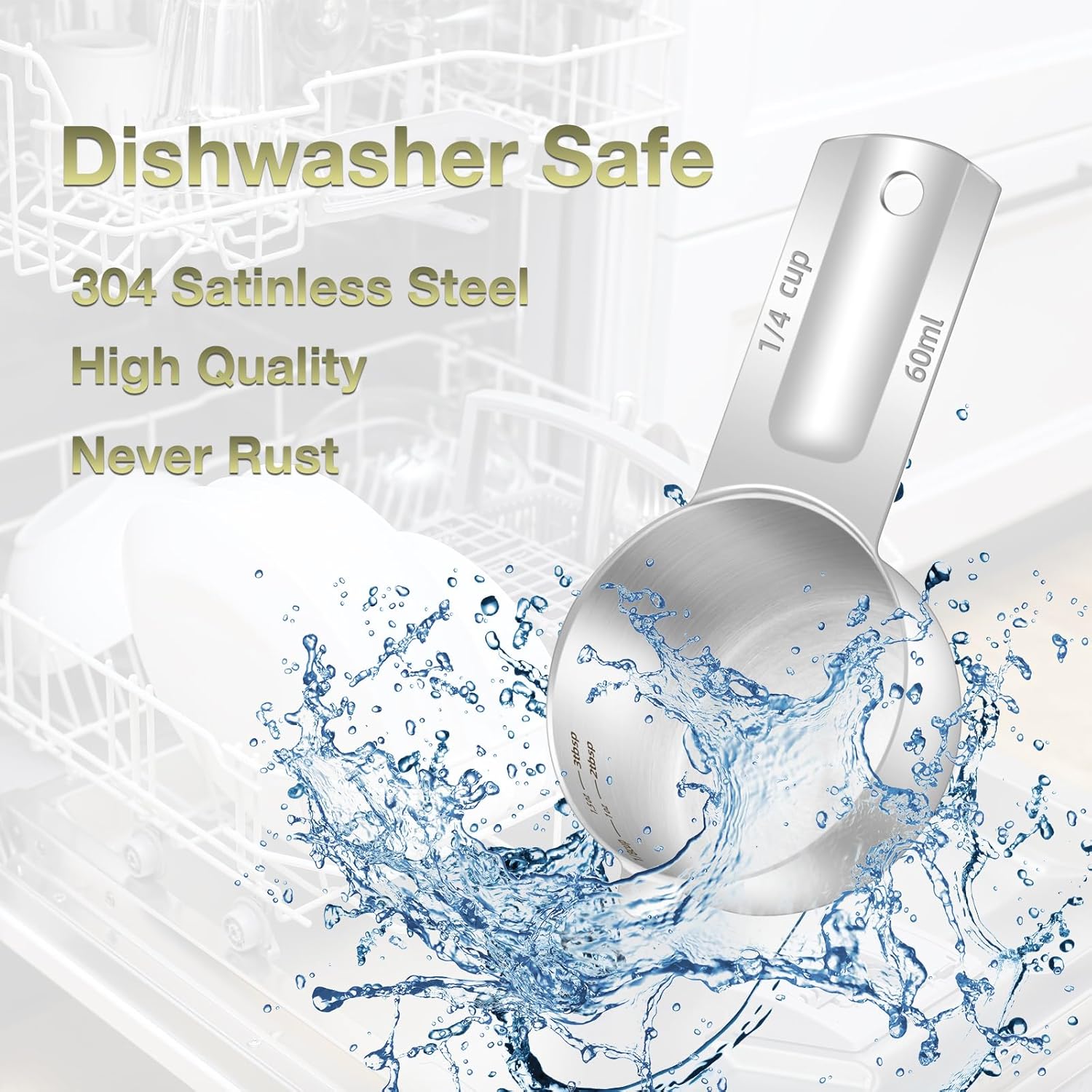 - Easy to Use - Measuring cups have a smooth surface, excellent touch, easy to clean, never rust, and the hole in the handle allows you to hang them up and save space in the kitchen