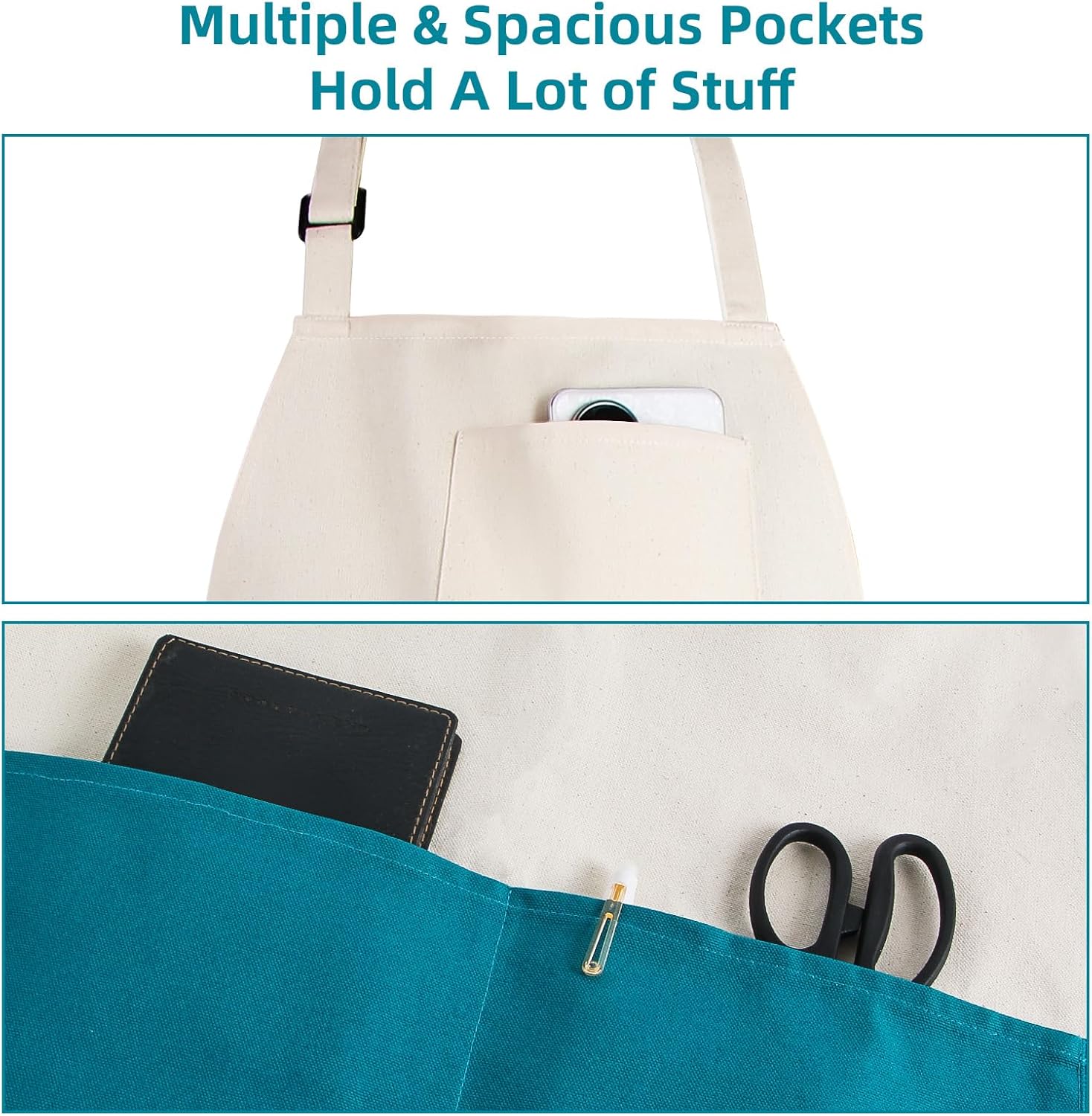 - All the Pockets You Need – Tools, Towels, and More Equipped with multiple deep pockets, this apron holds everything from spatulas and tongs to phone and notepads. Plus, a built-in towel loop keeps your dish towel always within reach – no more searching while you cook!