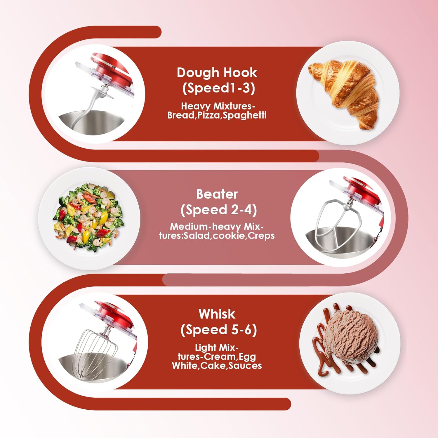 - 6.5 QT Stainless Steel Bowl for Daily Use - Our Household Stand Mixer ideal for family gatherings or hosting friends, meet needs of 2 - 6 people. Ideal for everyday baking, the kitchen mixer making it a reliable choice for making everything from bread dough to cake batter. Easy clean by Dishwasher.