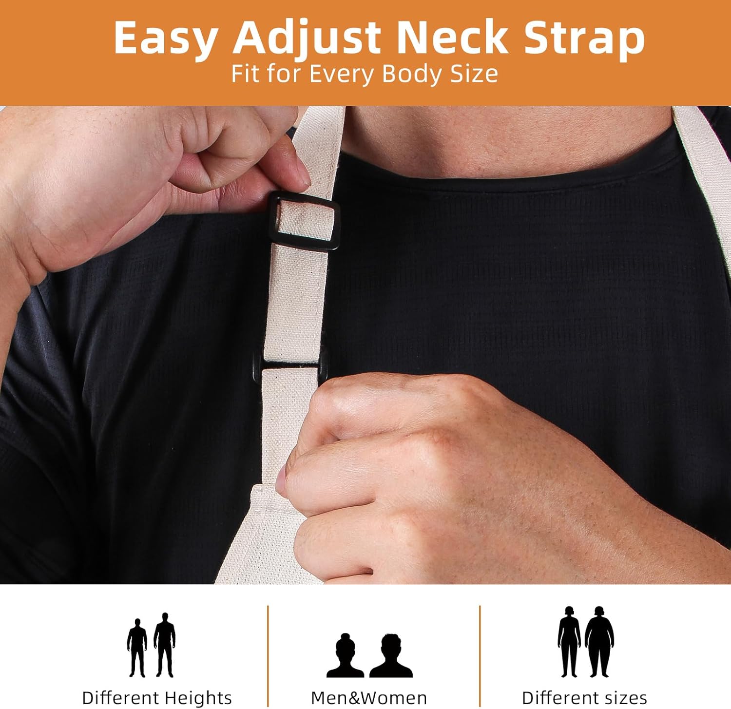 • Comfortable Fit – Adjustable for Every Body The cross-back straps reduce neck pressure and are fully adjustable for a perfect fit. Whether you’re tall, short, slim, or broad-shouldered, this apron adjusts to you. It’s great for long hours in the kitchen or at the grill.