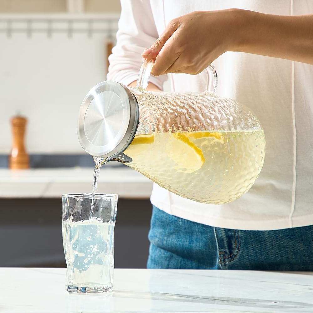 - WASHING INSTRUCTIONS: This 78-ounce glass water pitcher features a wide mouth for easy cleaning and is dishwasher safe. However, handwashing is recommended
