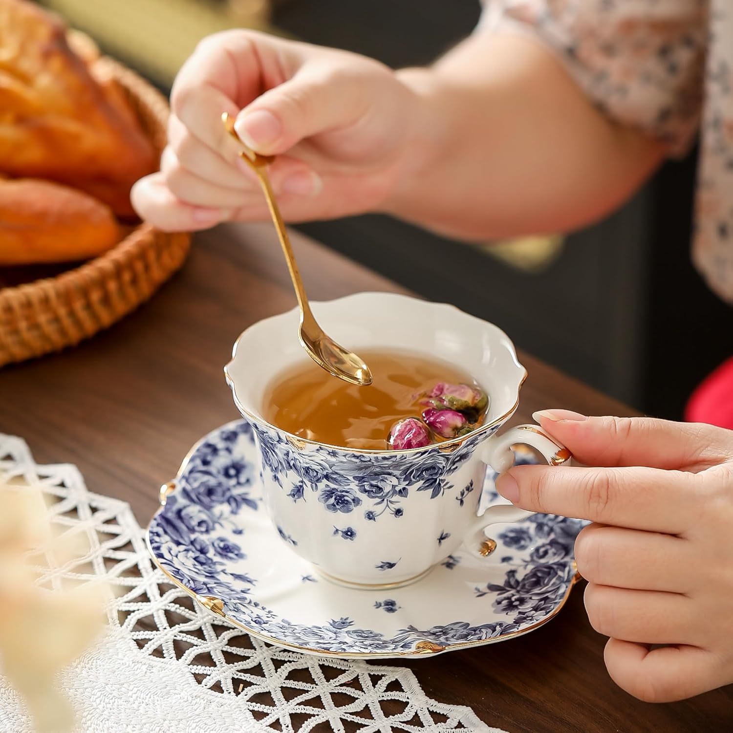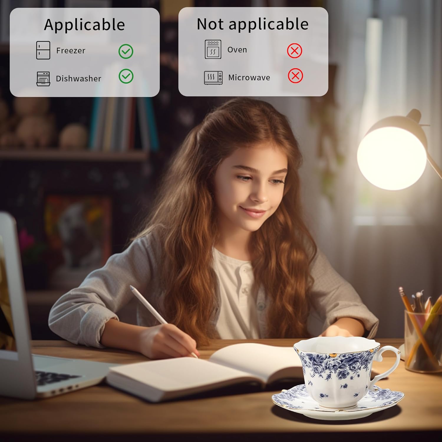 - Set Includes: 1 teacup (6.3 oz capacity) and 1 saucer, ideal for a single serving.