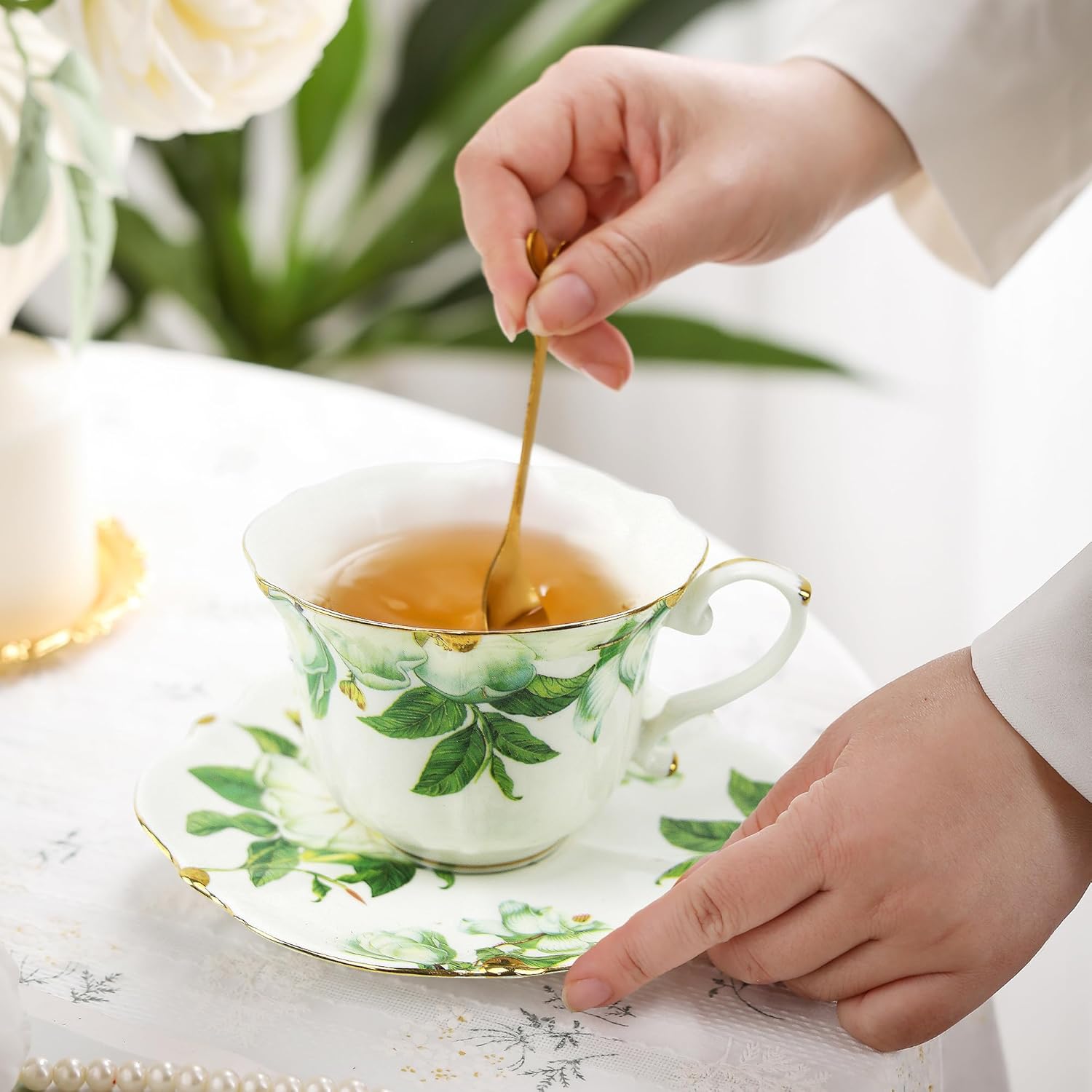 - Set Includes: 1 teacup (6.3 oz capacity) and 1 saucer, ideal for a single serving.