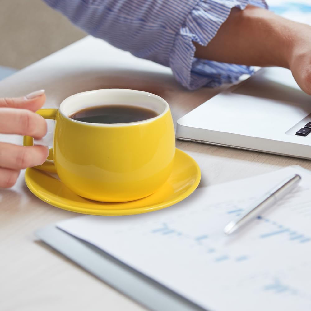 Porcelain Coffee Cup with Saucer 270ml/9oz, Minimalist Design, Perfect for Latte, Cappuccino, and Tea, Yellow