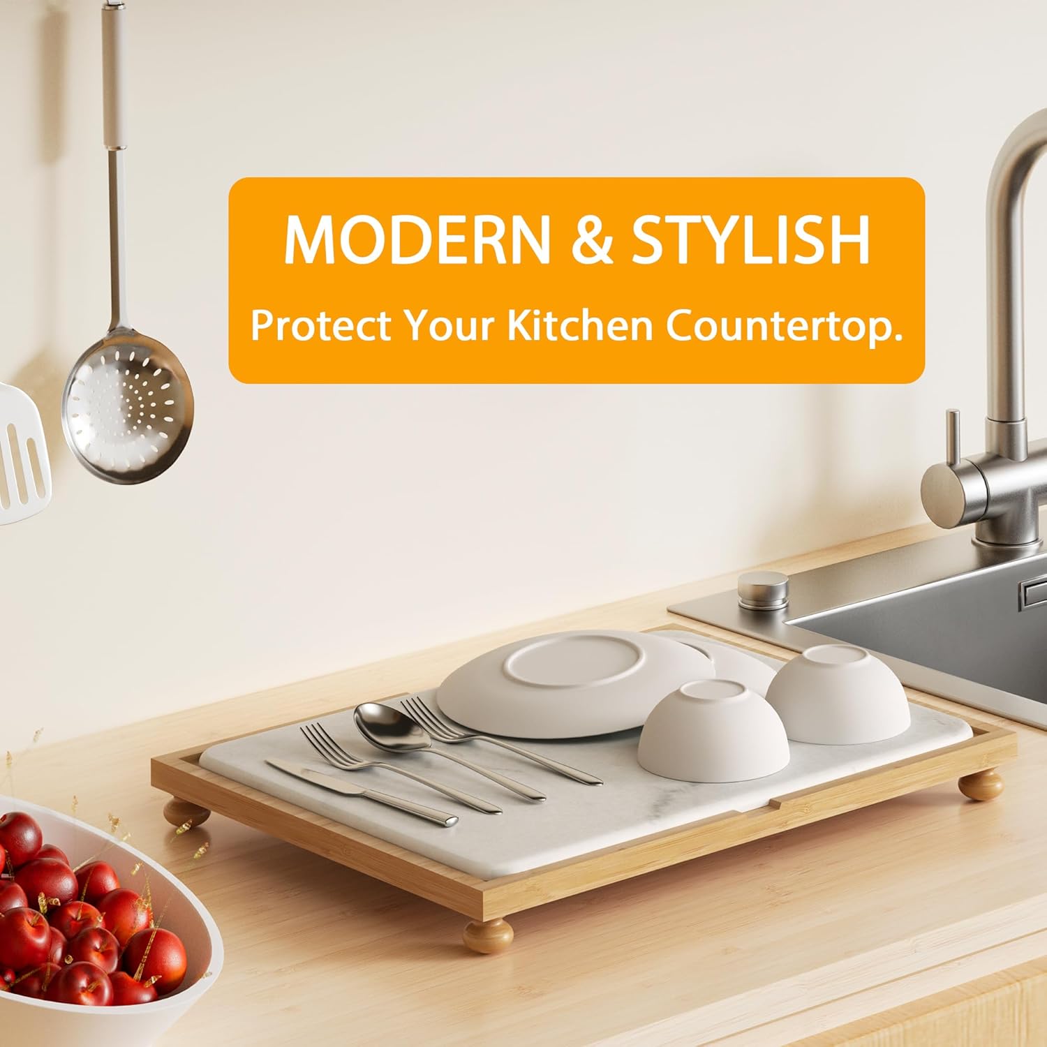 - ๐๐๐๐ข๐๐ข๐๐ง๐ญ ๐๐ซ๐ฒ๐ข๐ง๐ ๐๐จ๐ฐ๐๐ซ: Our stone drying mat for kitchen counter is crafted with diatomaceous earth mat and FSC-certified bamboo wood dish racks for kitchen counter, ensuring rapid absorption for your dishes. Perfect 2-in-1 dish drying mat, which is an essential addition to your kitchen accessories. Ideal for those who appreciate apartment essentials that combine functionality and style.