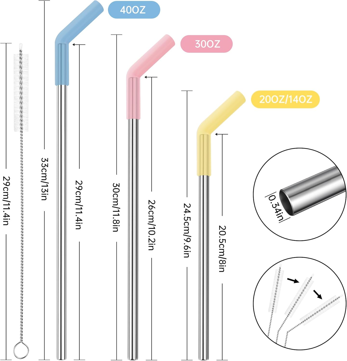 - Multi-Functional Compatibility: Our stainless steel straw set is designed to perfectly fit a range of Stanley Quencher H2.0 tumblers, including 40OZ, 30OZ, 20OZ, and 14OZ sizes. No matter which Stanley cup you own, you’ll have the ideal straw to suit your drinking needs, making this set a must-have accessory for your favorite tumbler.
