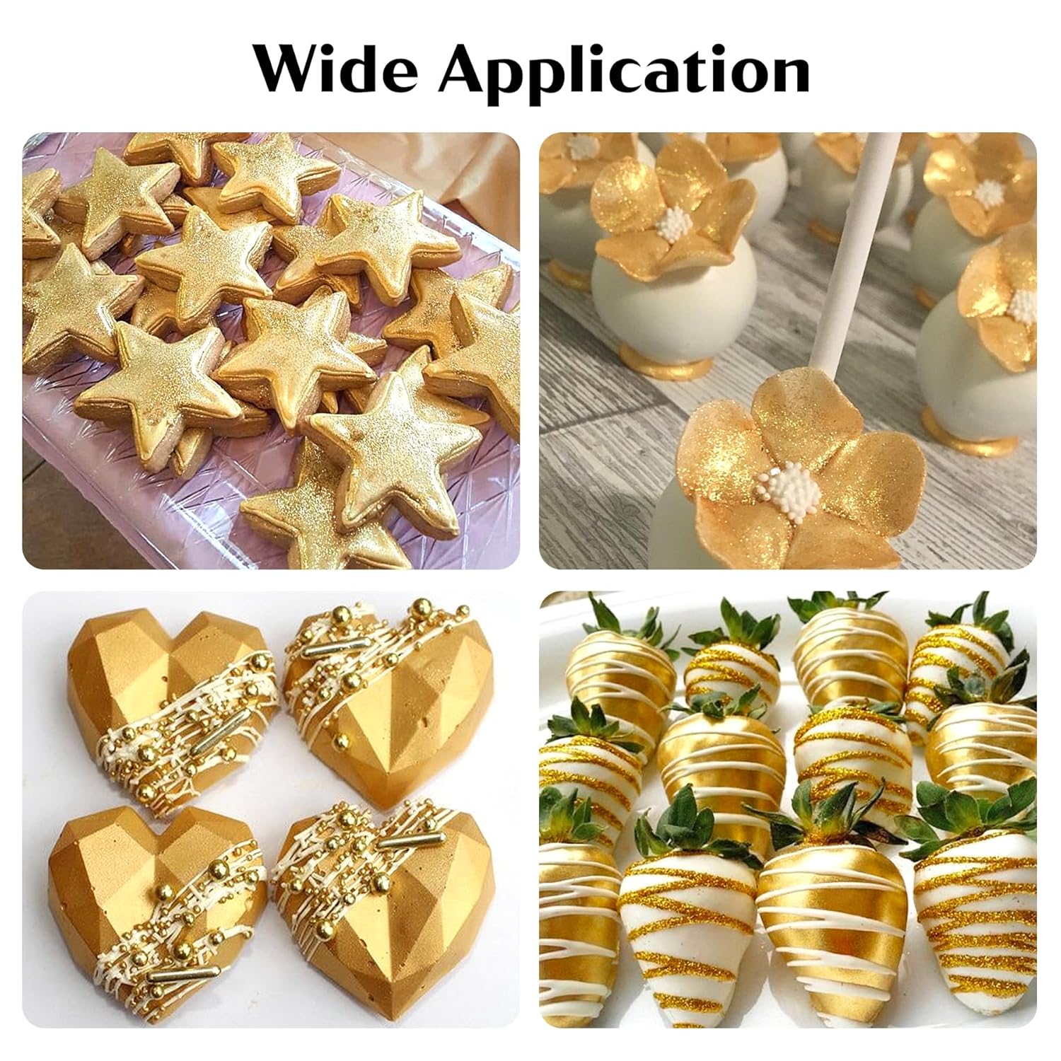 - Easy to Use - Our gold edible glitter can be added directly to cakes, desserts, cocktails, and drinks. The gold luster dust edible can also be mixed with oil-based flavorings and applied using a brush for your DIY baking or desserts!