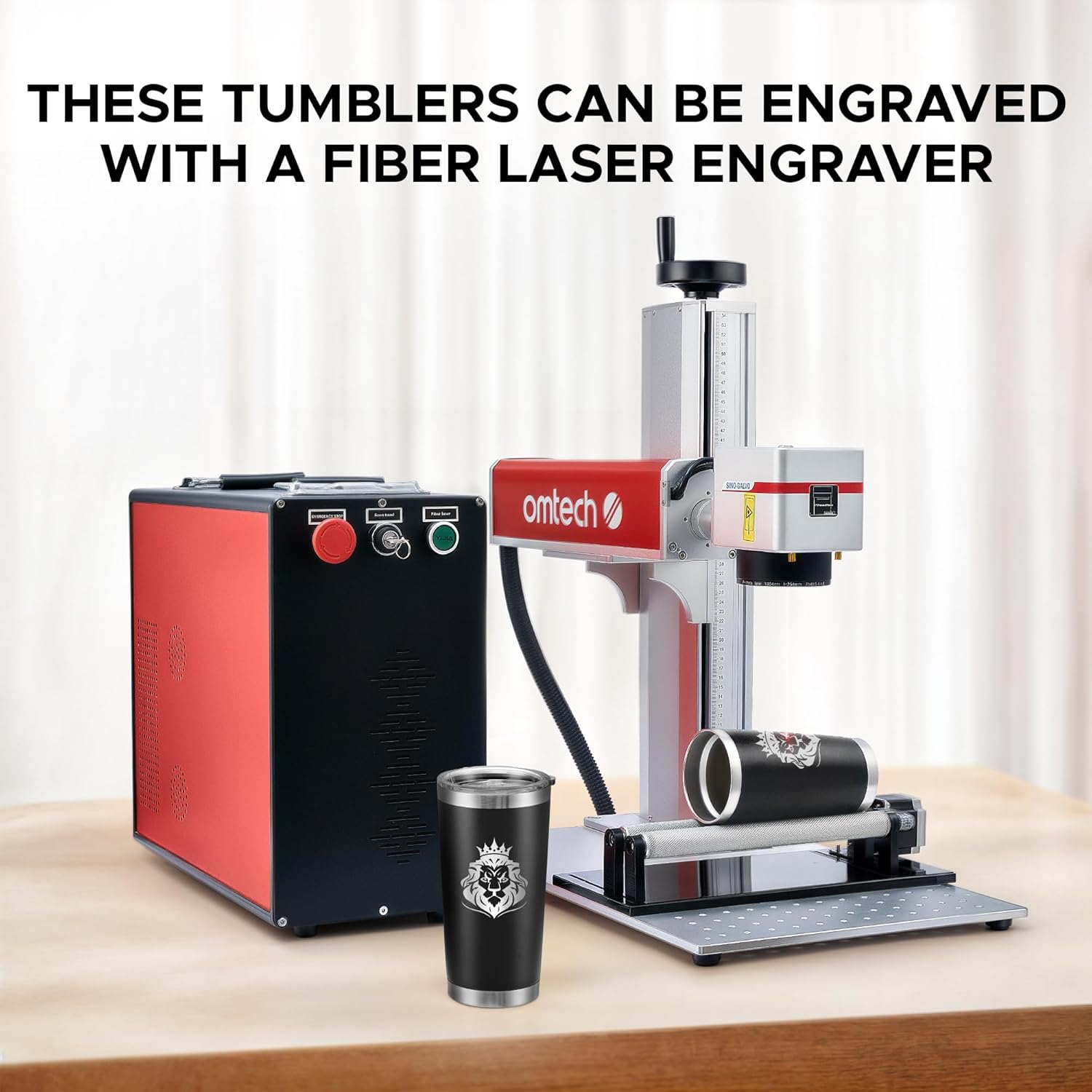 OMTech 20oz Tumblers Bulk, 12pc Stainless Steel Tumbler Set with Lid & Straw, Double Wall Vacuum Insulated Mug for Laser Engraver, Travel Coffee Mug for Hot & Cold Drinks, Black Powder Coated Cup