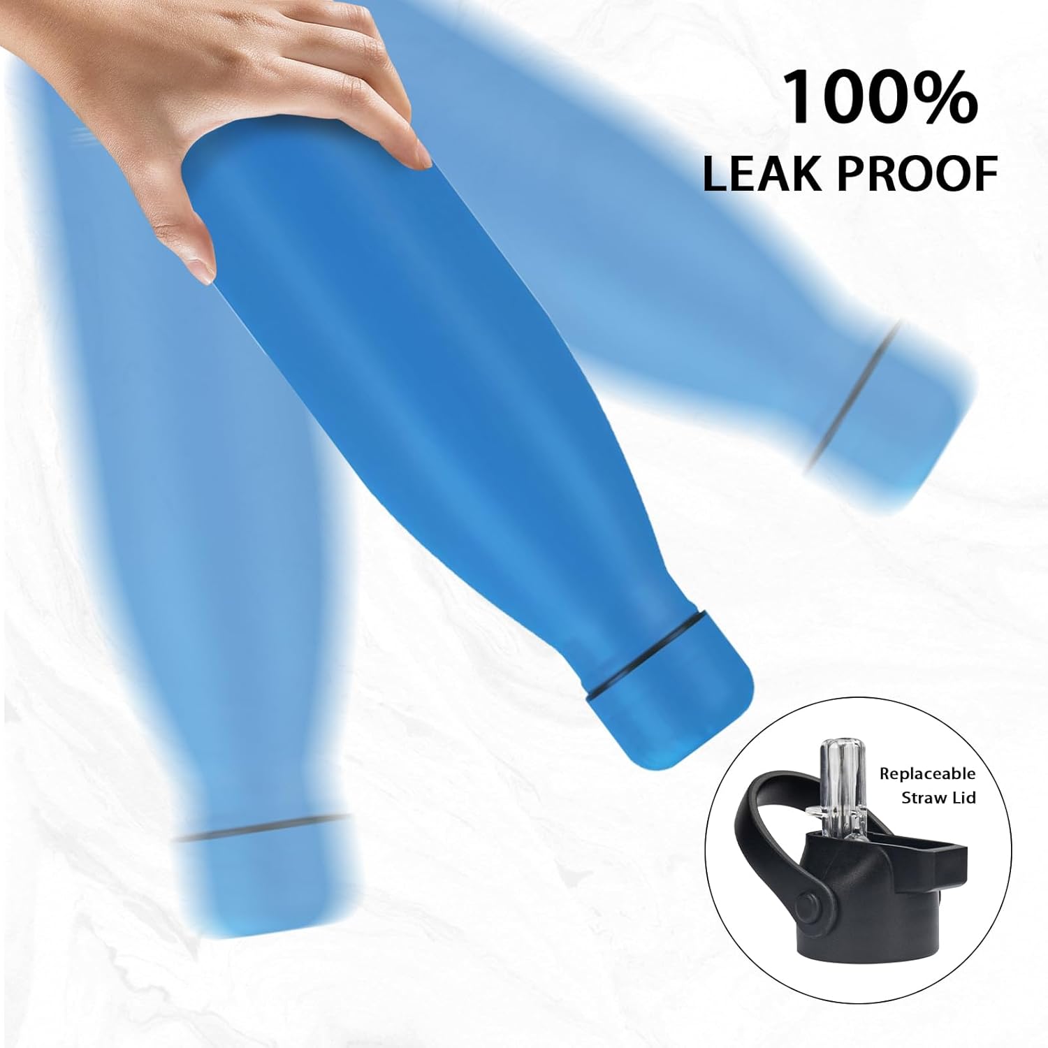 Insulated Water Bottle, 17oz Stainless Steel Water Bottles with straw lid, Metal Sports Water Bottles for Boys,Girls, Double Wall Vacuum BPA-Free Flask for School, Sports (Ocean Blue)