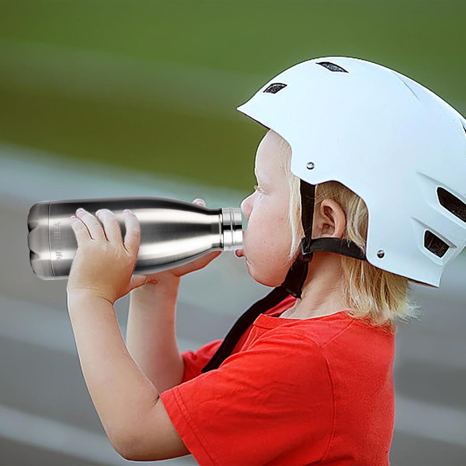 - SAFE & HEALTH:YEBTS life's insulated water bottles are made from BPA-free,phthalate-free, non-toxic, high-quality 18/8 food-grade stainless steel that is strong and rust proof for unique durability.So kids can sip every sip of their favourite beverage with confidence.Children drink water every day,a healthy water bottle is very important to them.This high-quality stainless steel water bottle is definitely the best growth gift for children!