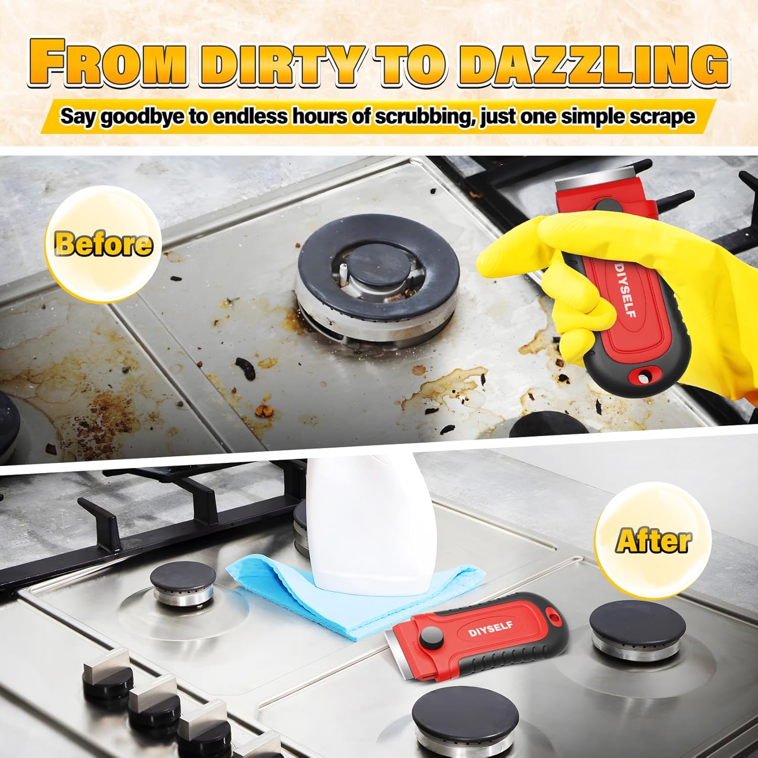 DIYSELF 2 Pack Razor Blade Scraper with 30 Pcs Blades - Scraper Tool - Scraper for Cleaning Stove, Oven, Glass, Kitchen - Paint Scraper - Razor Scraper - Glass Scraper - Glass Stove Top Scraper