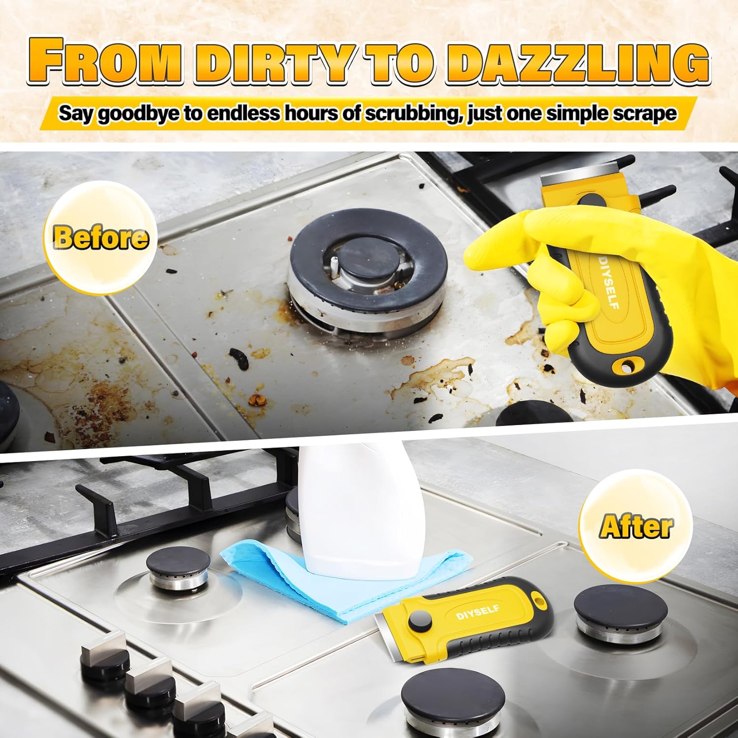 DIYSELF Razor Blade Scraper | Scraper Tool for Cleaning, Glass, Stickers | 2 Pack Scraper with 30 Pcs Extra Single-edged Razor Blades | Paint Scraper | Razor Scraper | Glass Scraper