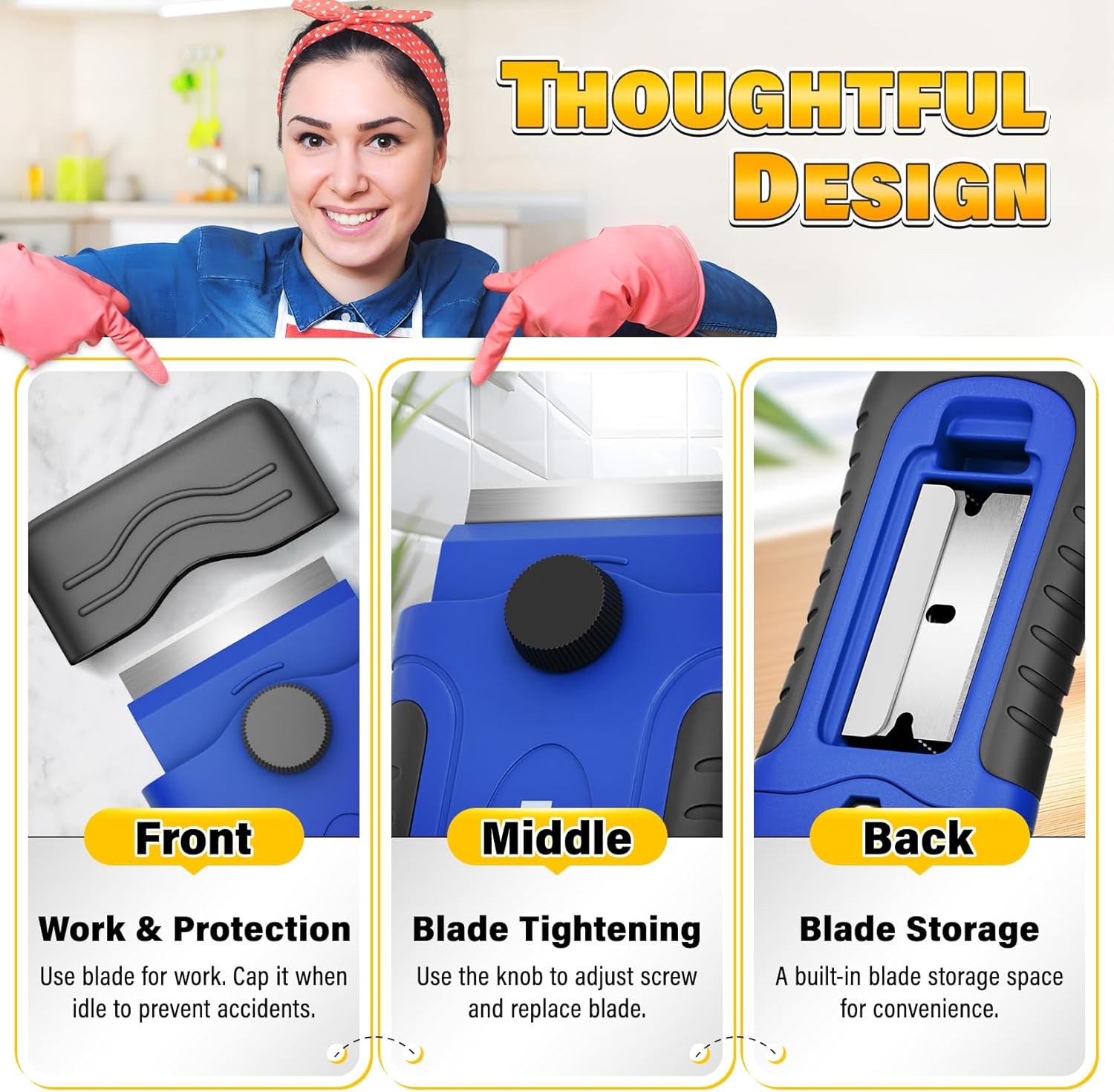 - Compact Scraper Tool: The newly launched set of 2 scrapers and 30 blades offers ample stock for various tasks. One action meets long-term usage needs, eliminating the trouble of frequent restocking. Whether for daily household cleaning or small-scale engineering scraping jobs, it is a perfect fit bringing enduring convenience and benefits.